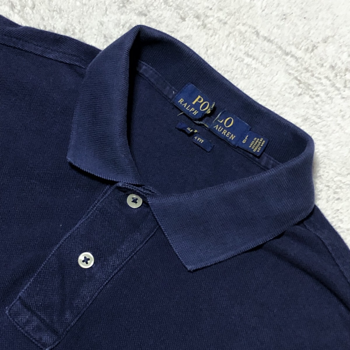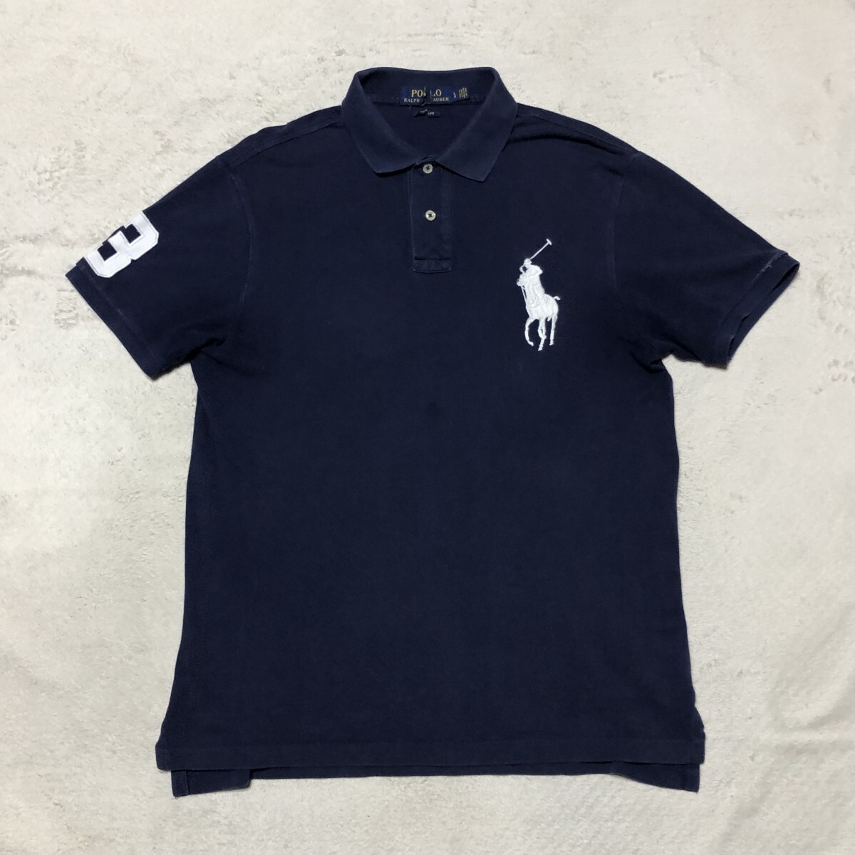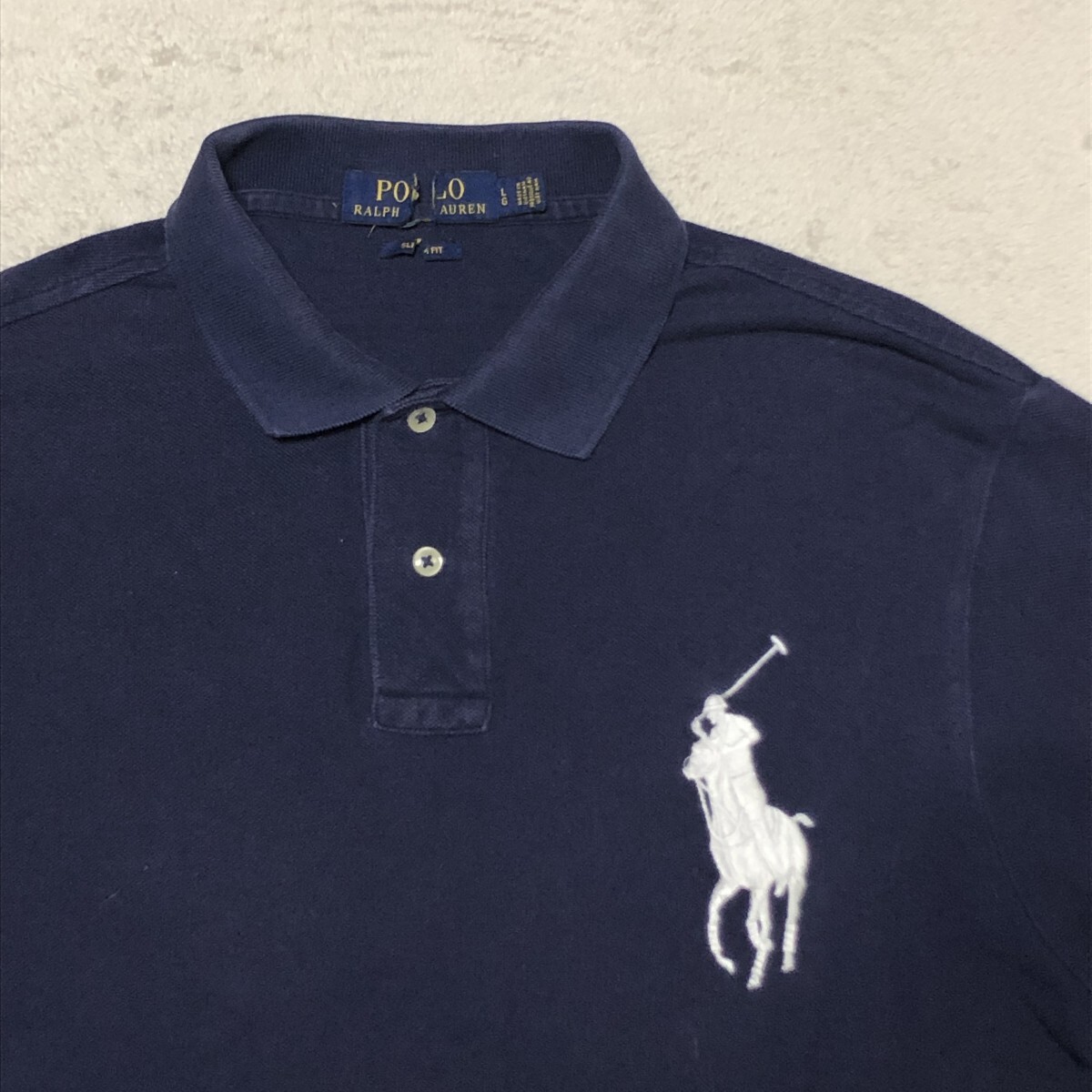 POLO RALPH LAUREN ポロ ラルフローレン 半袖ポロシャツ 鹿の子 ビッグポニー刺繍 近年タグ ネイビー 人気の大きいサイズ Lサイズ