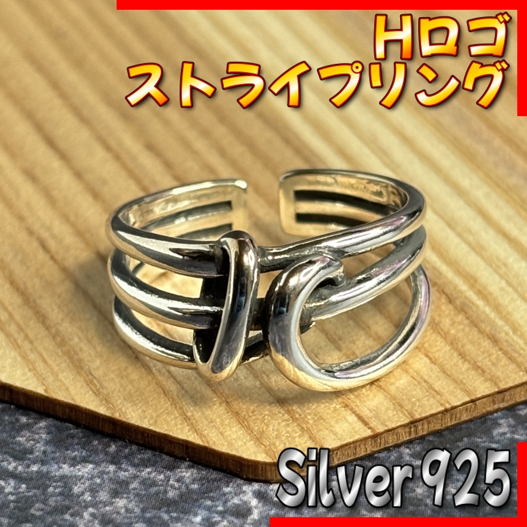 洗練されたHロゴ、ストライプのデザインが特徴的なシルバーリング。