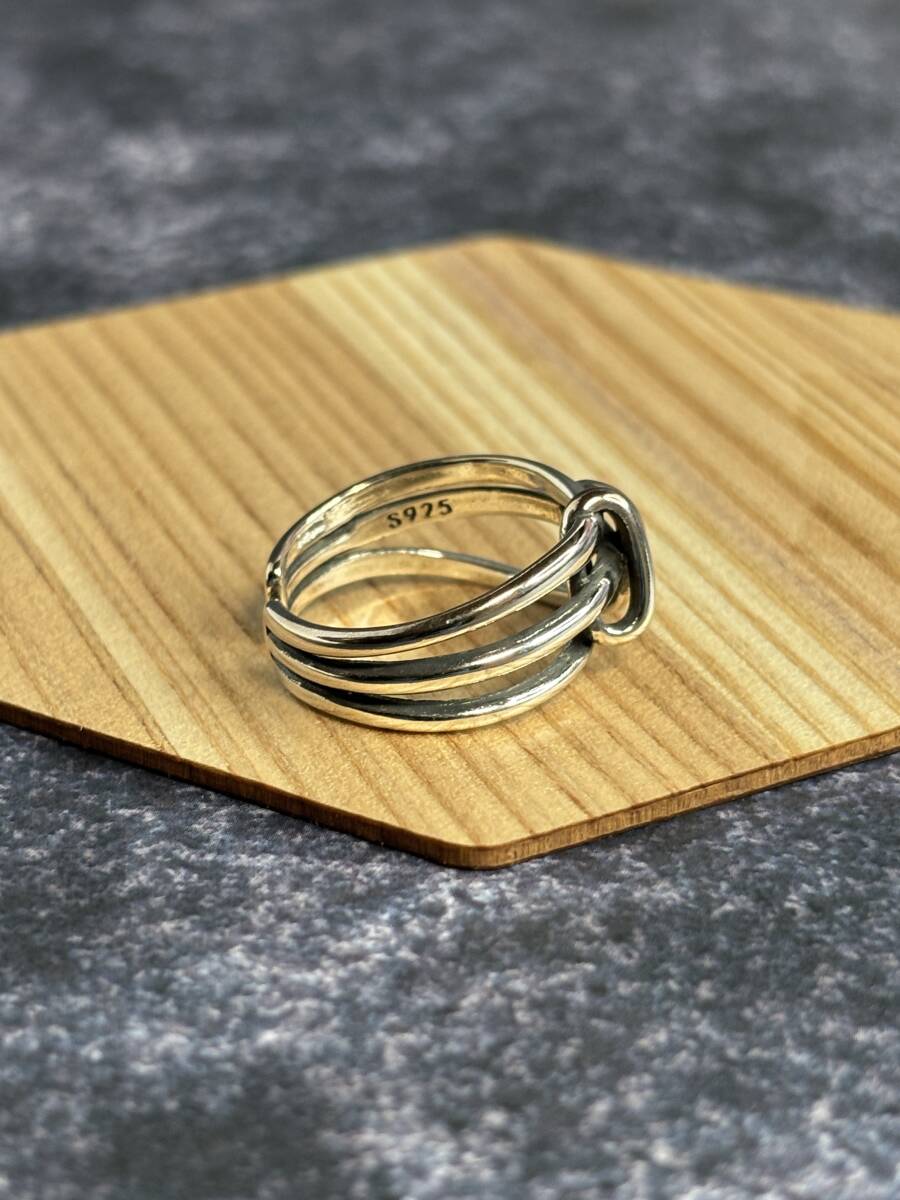 立体的で重厚感のあるフォルムが、指元に確かな存在感を与えます。