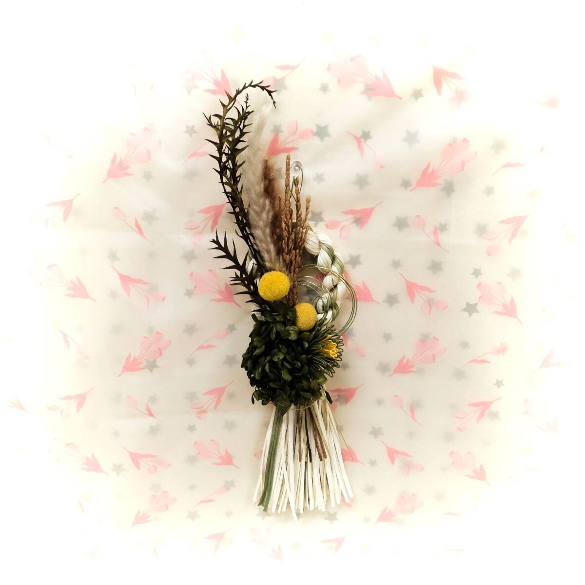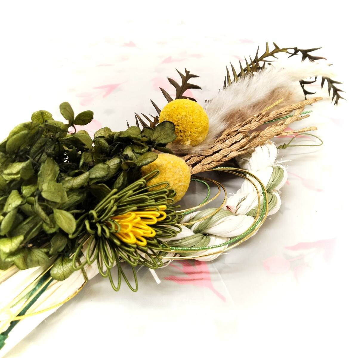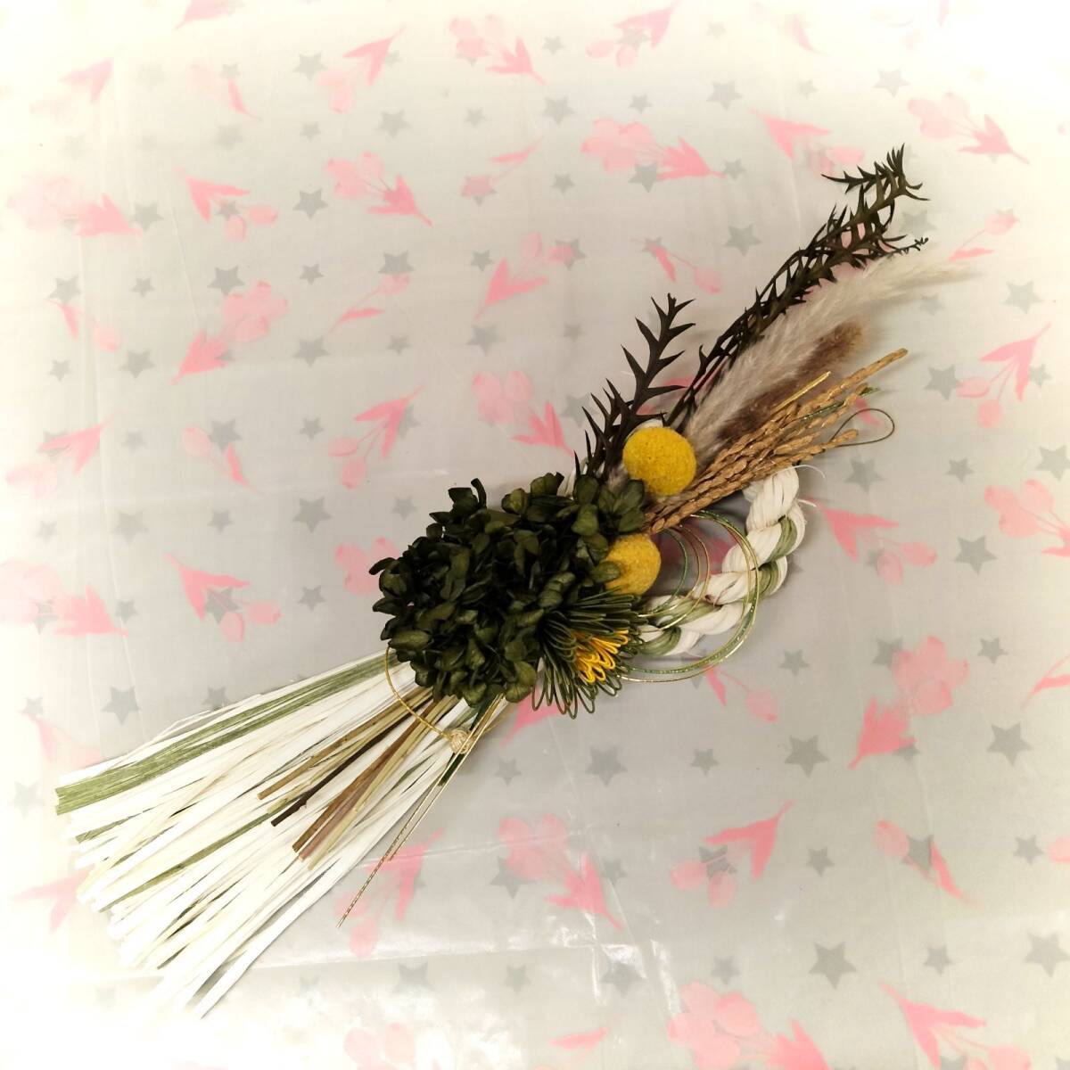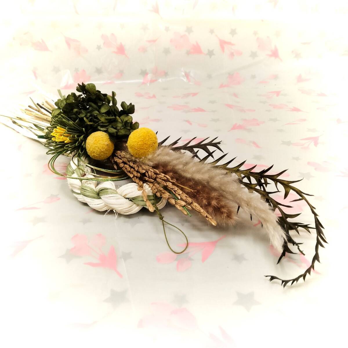 アーティフィシャルフラワーと水引を組み合わせたしめ縄です。
