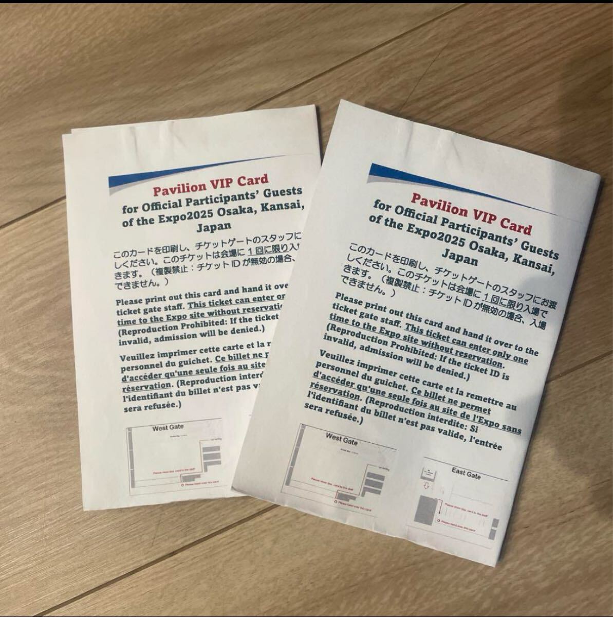 ○この用紙があれば、入場時は西ゲート東ゲートどちらからでも待機列に並ばず、VIPレーンから入場できます。