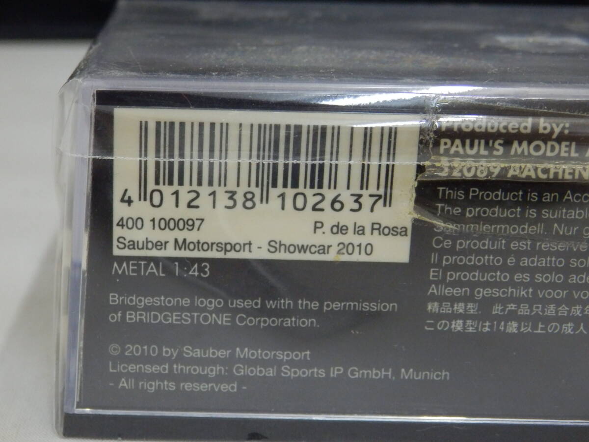 MINICHAMPS SAUBER MOTORSPORT SHOWCAR 2010 P.DE LA ROSA F1 限定 ミニチャンプス ザウバー F1 P.デ ラ ロサ ショーカー 2010 1/43