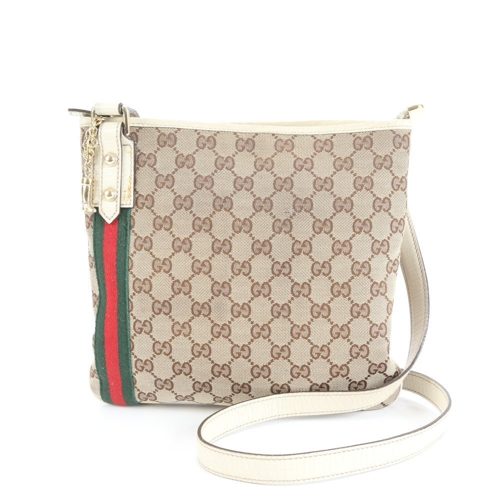 1円■極美品■グッチ■GG キャンバス シェリー ライン レザー ショルダーバッグ 斜め掛け ハンド トート 144388 レディース EUE CV14-2