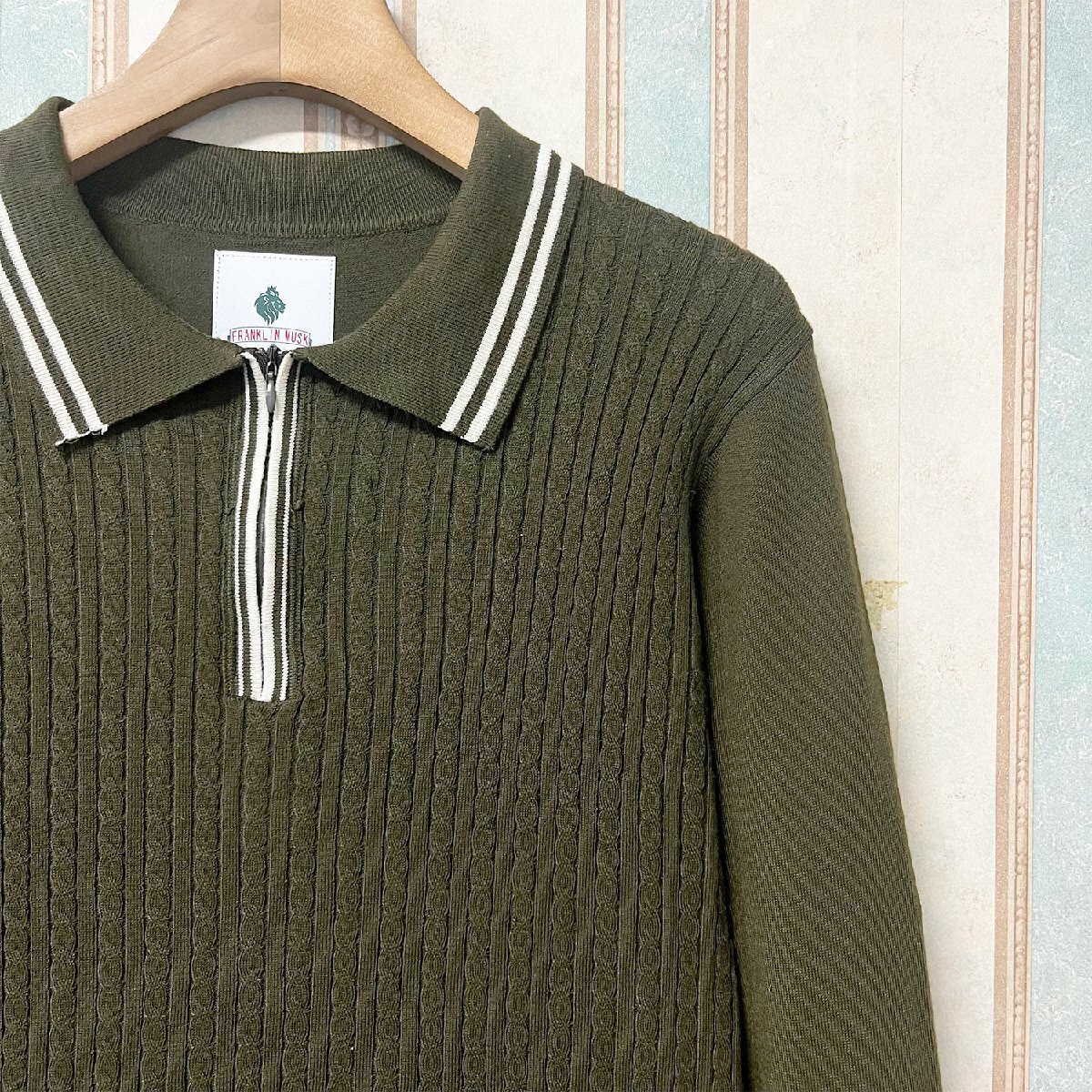 高級 定価4万 FRANKLIN MUSK・アメリカ・ニューヨーク発 セーター ウール混 柔らか 折り襟 ハーフジップ ケーブル柄 ニット トップス 秋冬 サイズ1