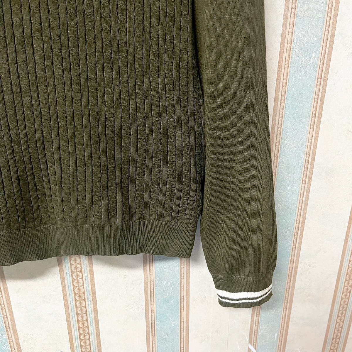 スタイリッシュなハーフジップ仕様で、首元の開け閉めにより印象を変えることができます。立体感のあるケーブル編みがアクセントになっており、シンプルながらも存在感のあるデザイン。襟と袖口に入った2本ラインがスポーティな印象をプラスしています。全体的にスリムなシルエットで、体のラインをきれいに見せてくれるのもポイントです。