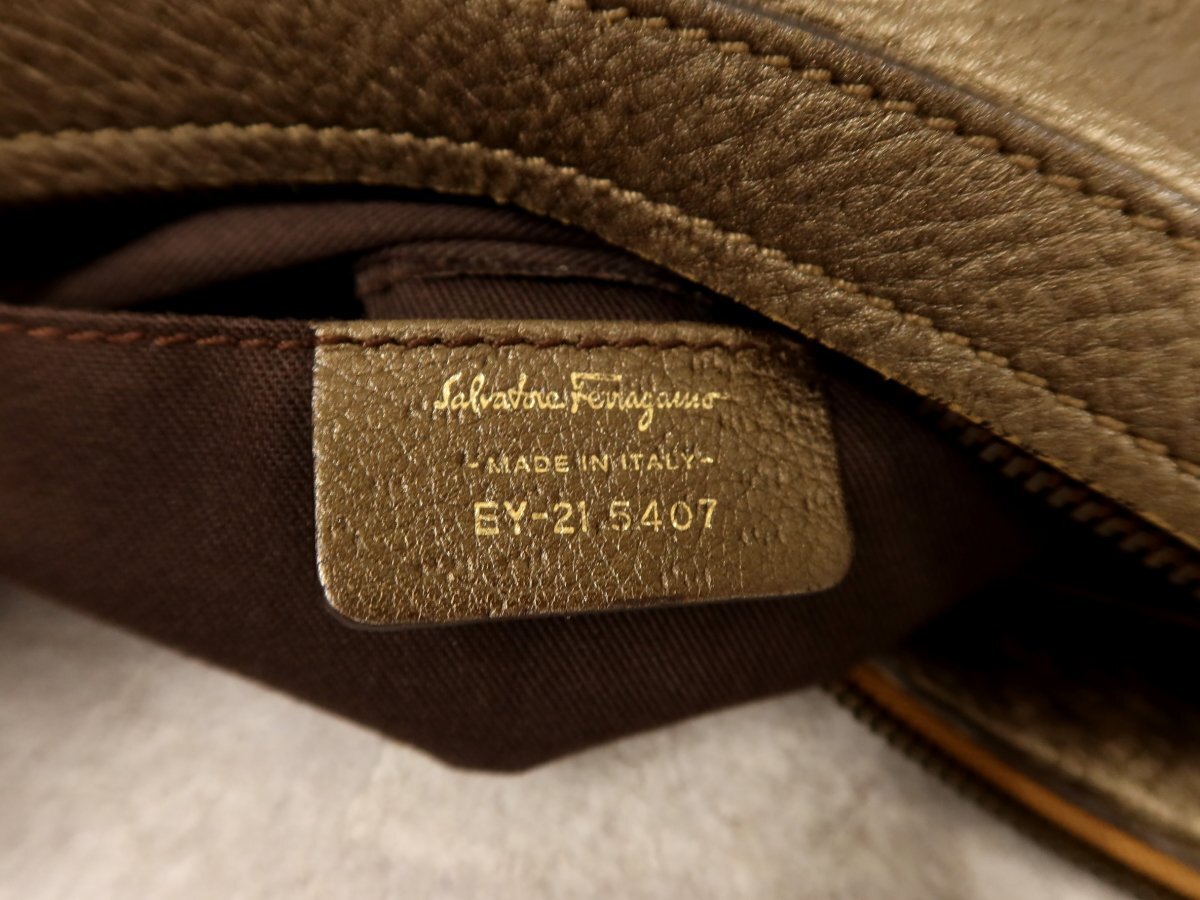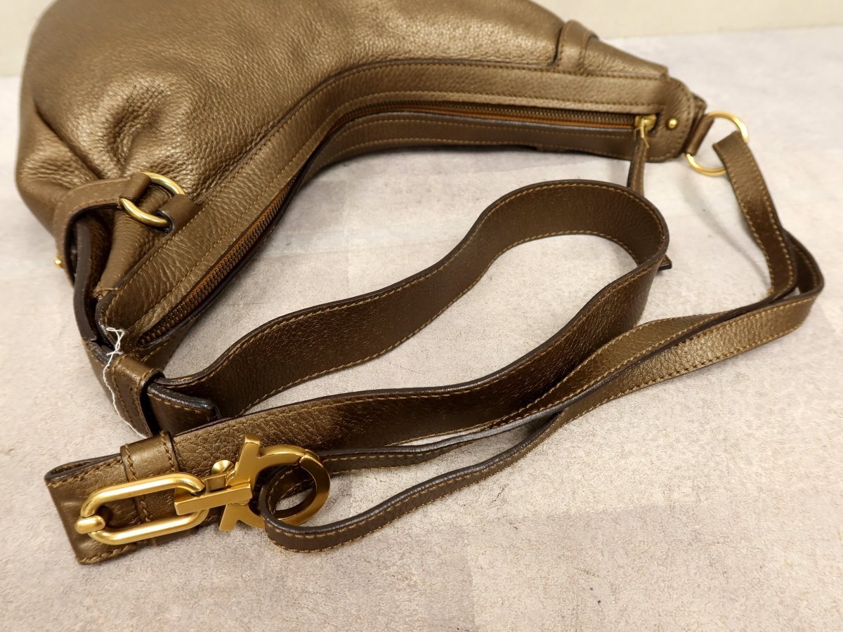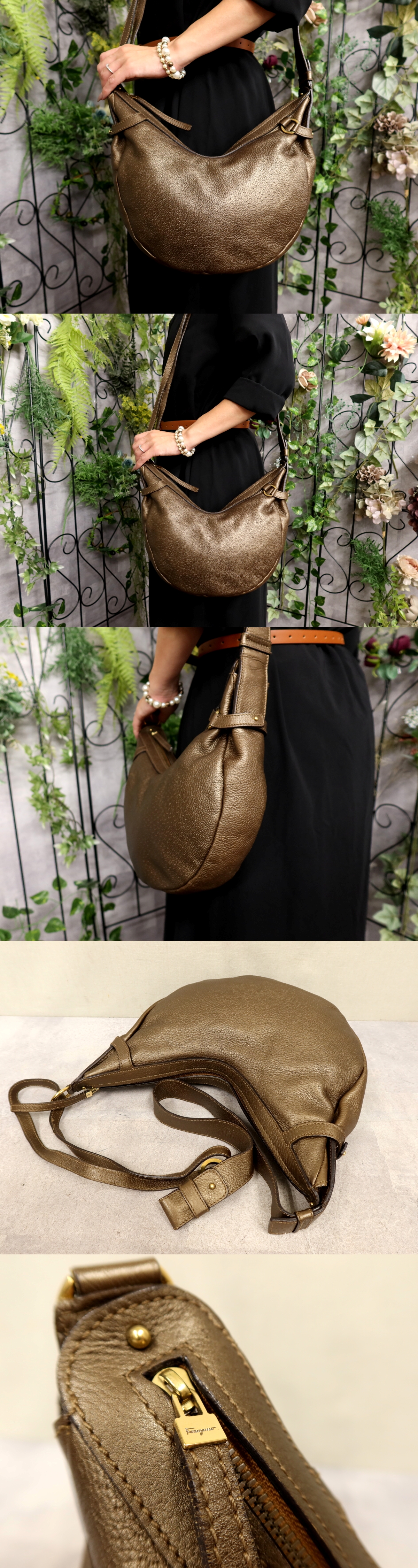 ●超美品●フェラガモ●ガンチーニ●ピッグスキン レザー 本革●ワンショルダー バッグ●メタリックブラウン●ゴールド金具●収納●Js61079