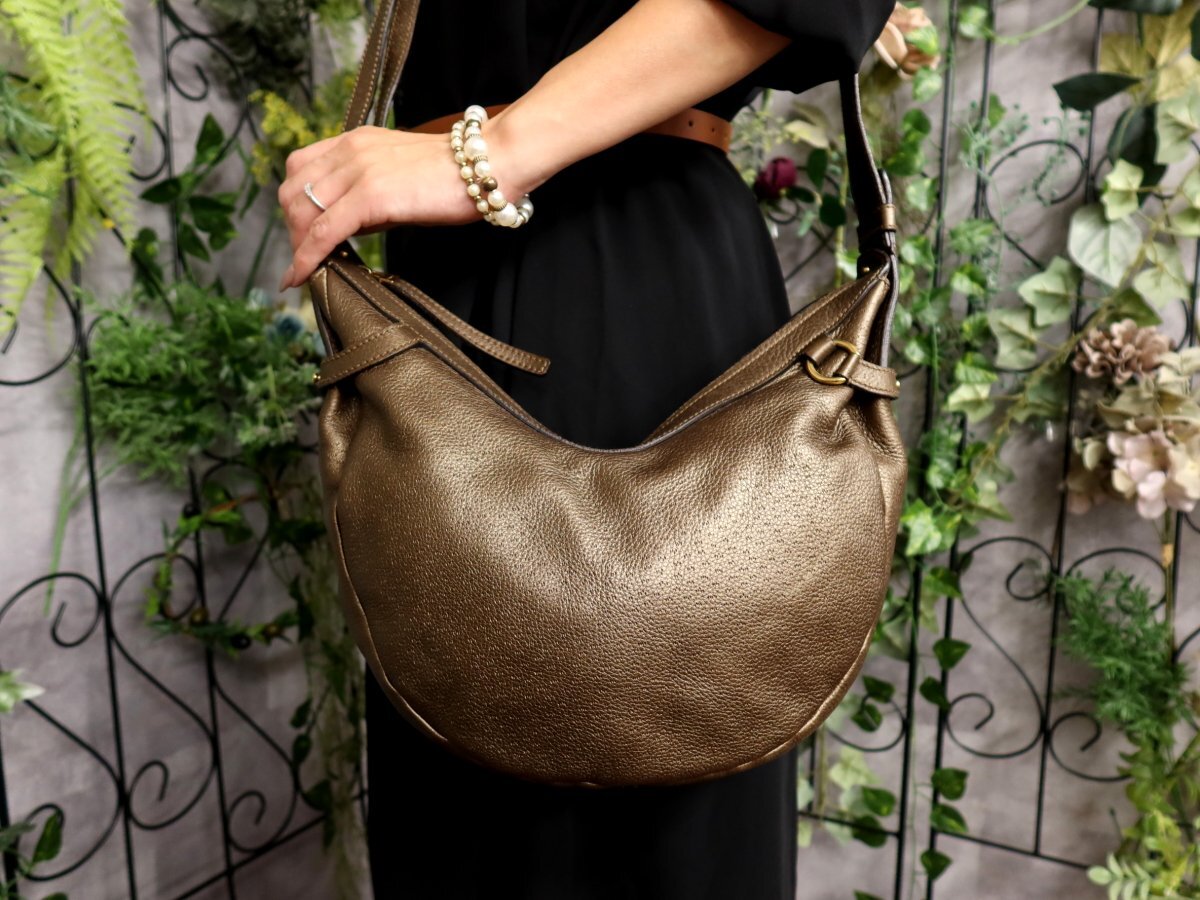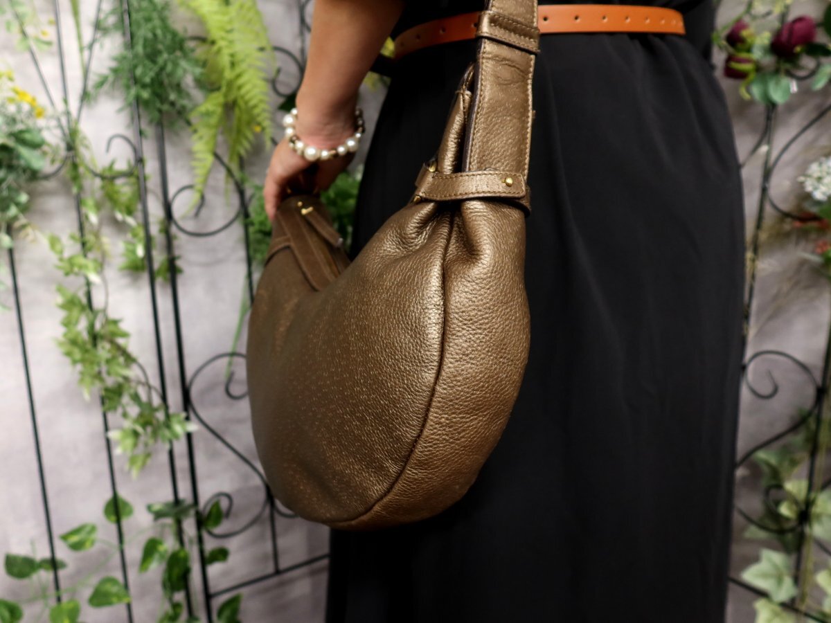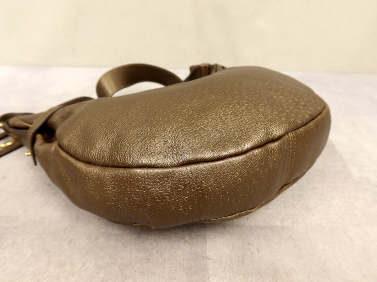 ●超美品●フェラガモ●ガンチーニ●ピッグスキン レザー 本革●ワンショルダー バッグ●メタリックブラウン●ゴールド金具●収納●Js61079