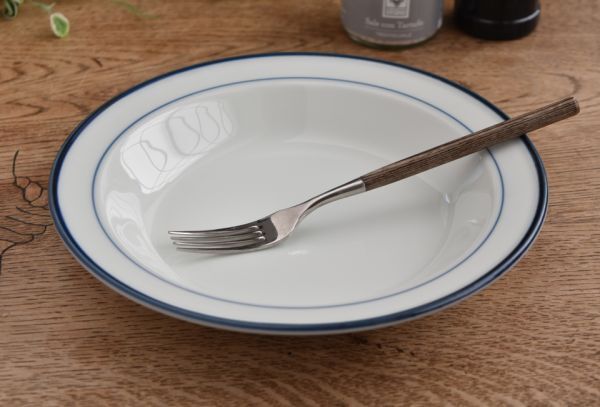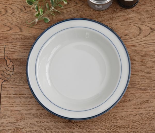 北欧★モダンリビング★2重 ブルーライン スープ皿  22cm パスタ皿 カレー皿 フルーツ皿 デザート皿