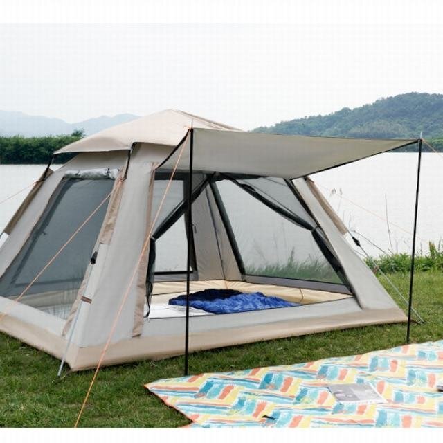 テント ワンタッチテント ワンタッチ式 キャンプ 簡単設営 窓口あり メッシュ付き 210D 二重防水 防風 UVカット UPF50+ 3~4人用テント