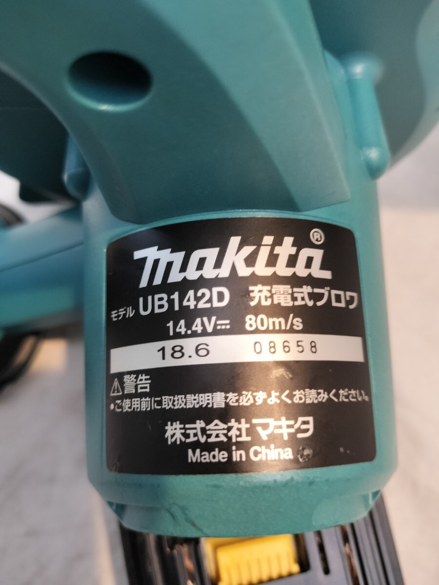 マキタの14.4V充電式ブロワUB142Dです。使用は少ない状態の良い美品です。ほとんど使用されて居ないと思います。ノズル、収納袋が付いています。充電器DC14RCとバッテリーBL1430もまだまだご使用ができると思います。バッテリーは満充電ができます、動作は確認済みです。発送はゆうパック着払い80サイズで発送いたします。