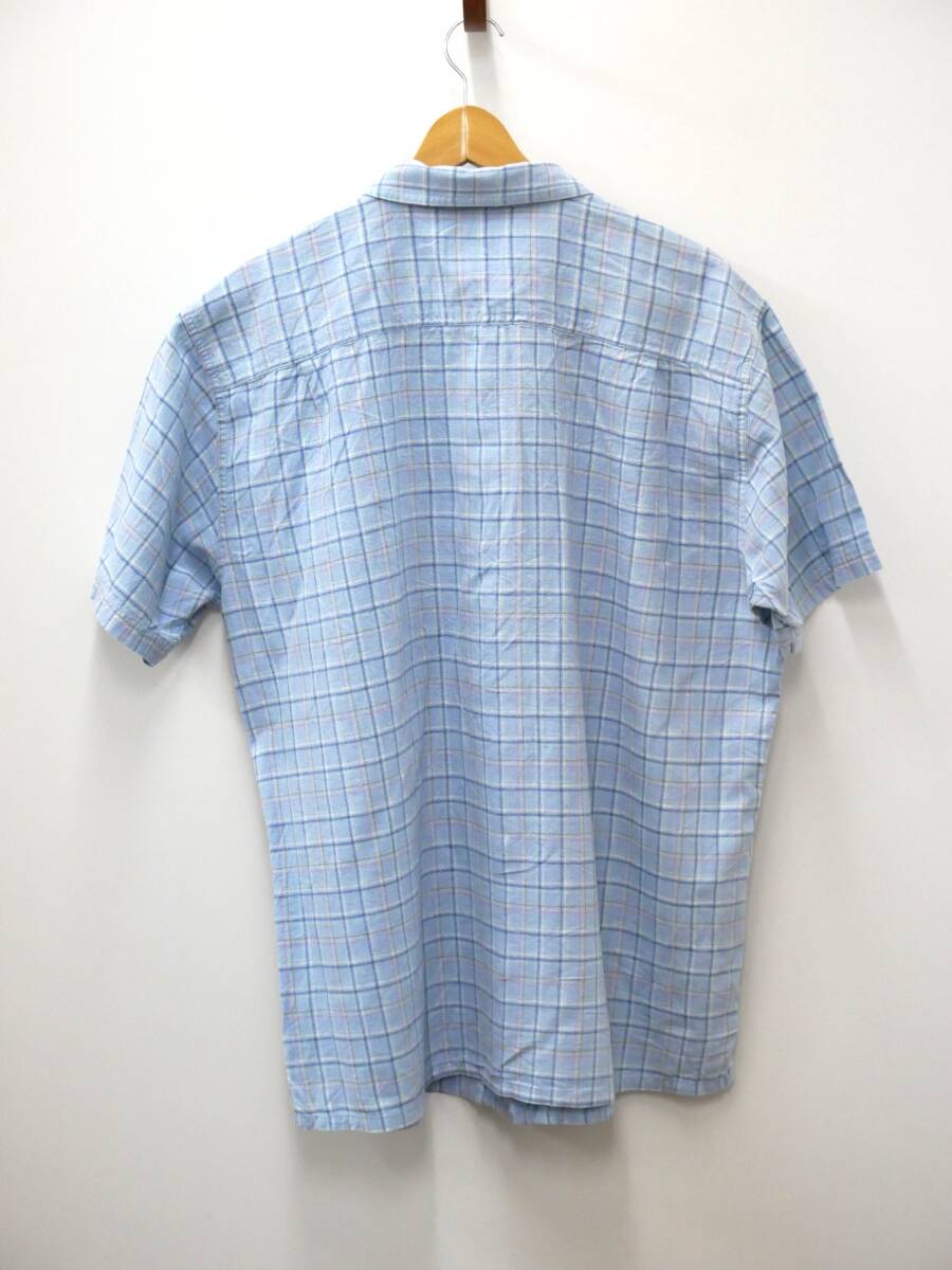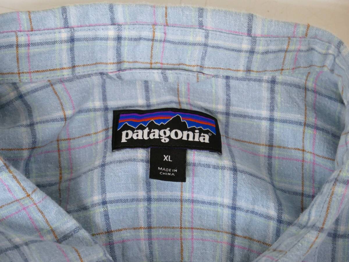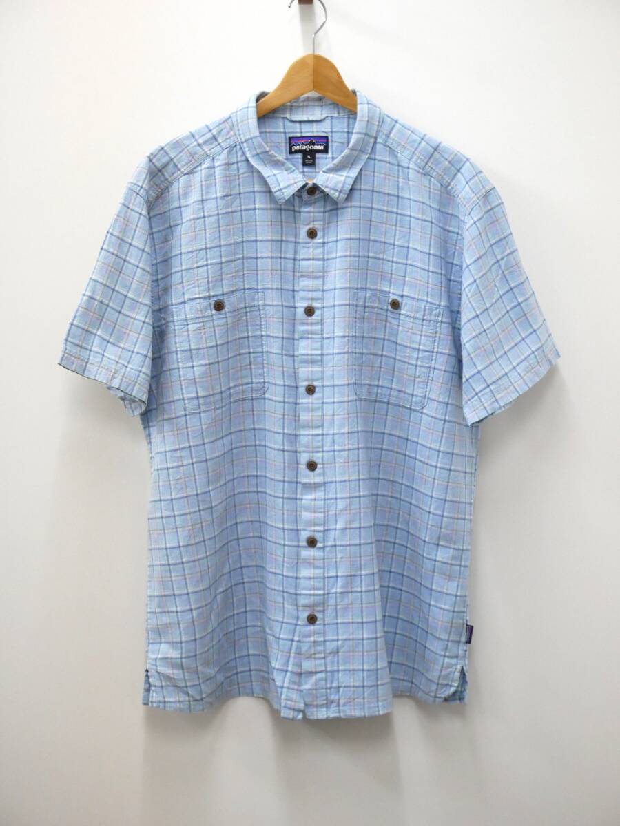 37W patagonia パタゴニア 半袖シャツ チェック XLサイズ ブルー ヘンプ オーガニックコットン ビンテージUSA古着
