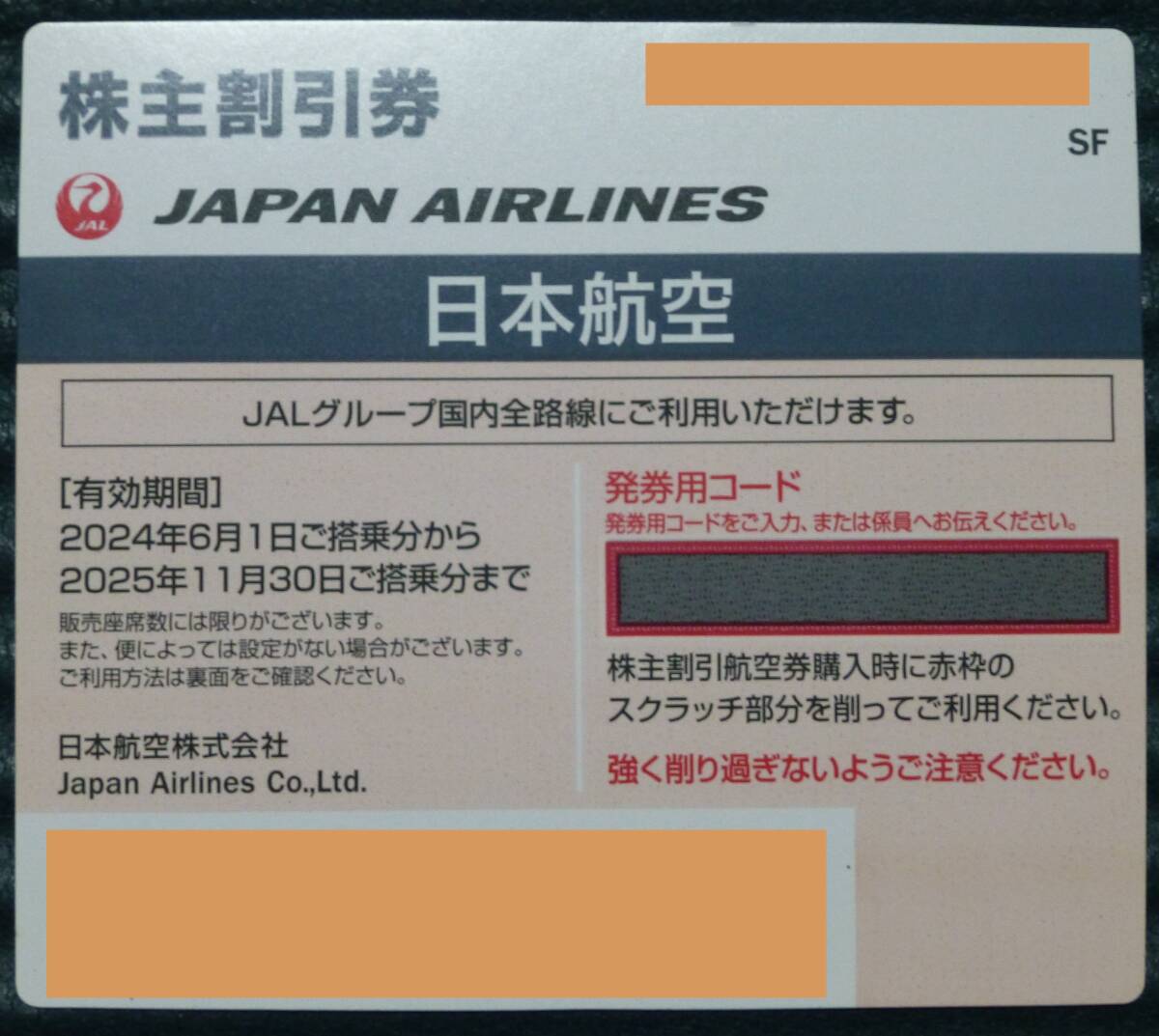JAL 株主優待券 (有効期間:2025年11月30日まで) 1枚【コード通知のみ】