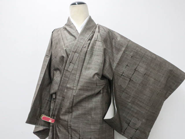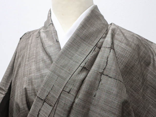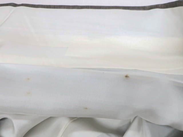 リサイクル商品のため、所々しみがございますが着用可能なお品です。 地色は焦げ茶です。 1枚目の画像が近いお色かと思われます。 素材は正絹です。 |