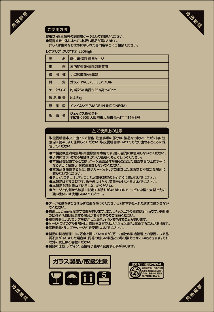 爬虫類・両生類等の飼育用ケージとしてお使いください。