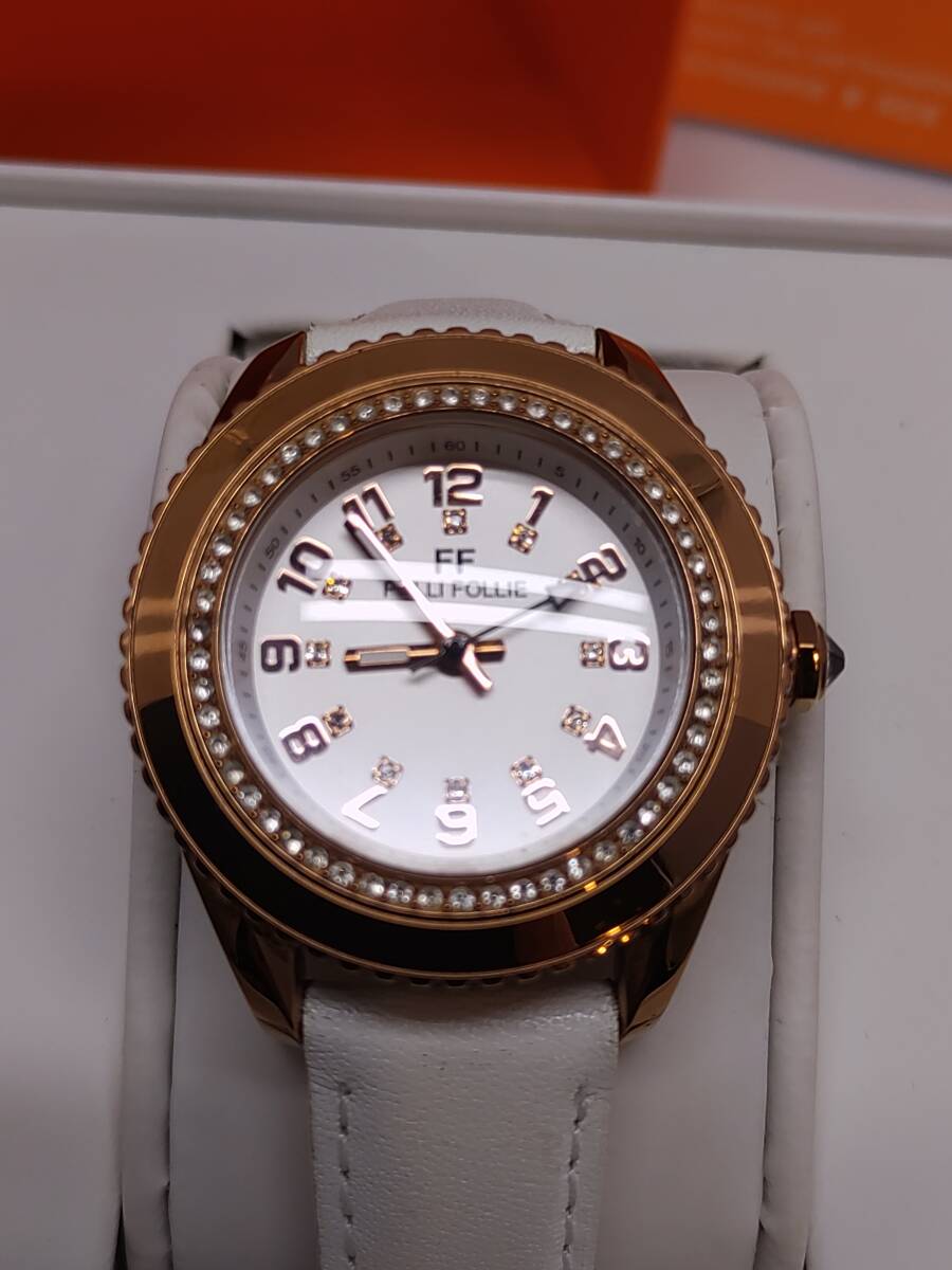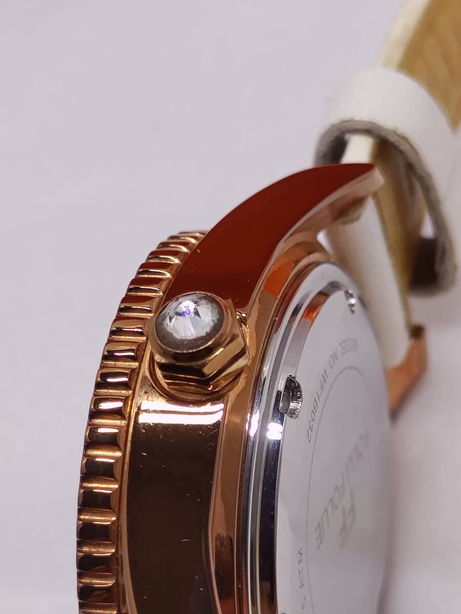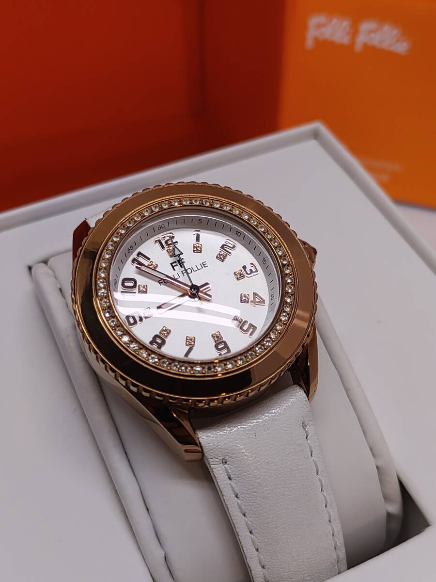 ギリシャ発の人気ブランド「Folli Follie(フォリフォリ)」から、ローズゴールドとクリスタルが輝く、エレガントなレディース腕時計です。 正規販売店の保証書、純正BOX、取扱説明書が揃っています。正常に稼働しており、使用感の少ない良品です。