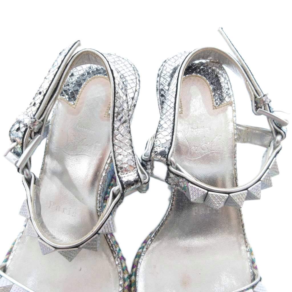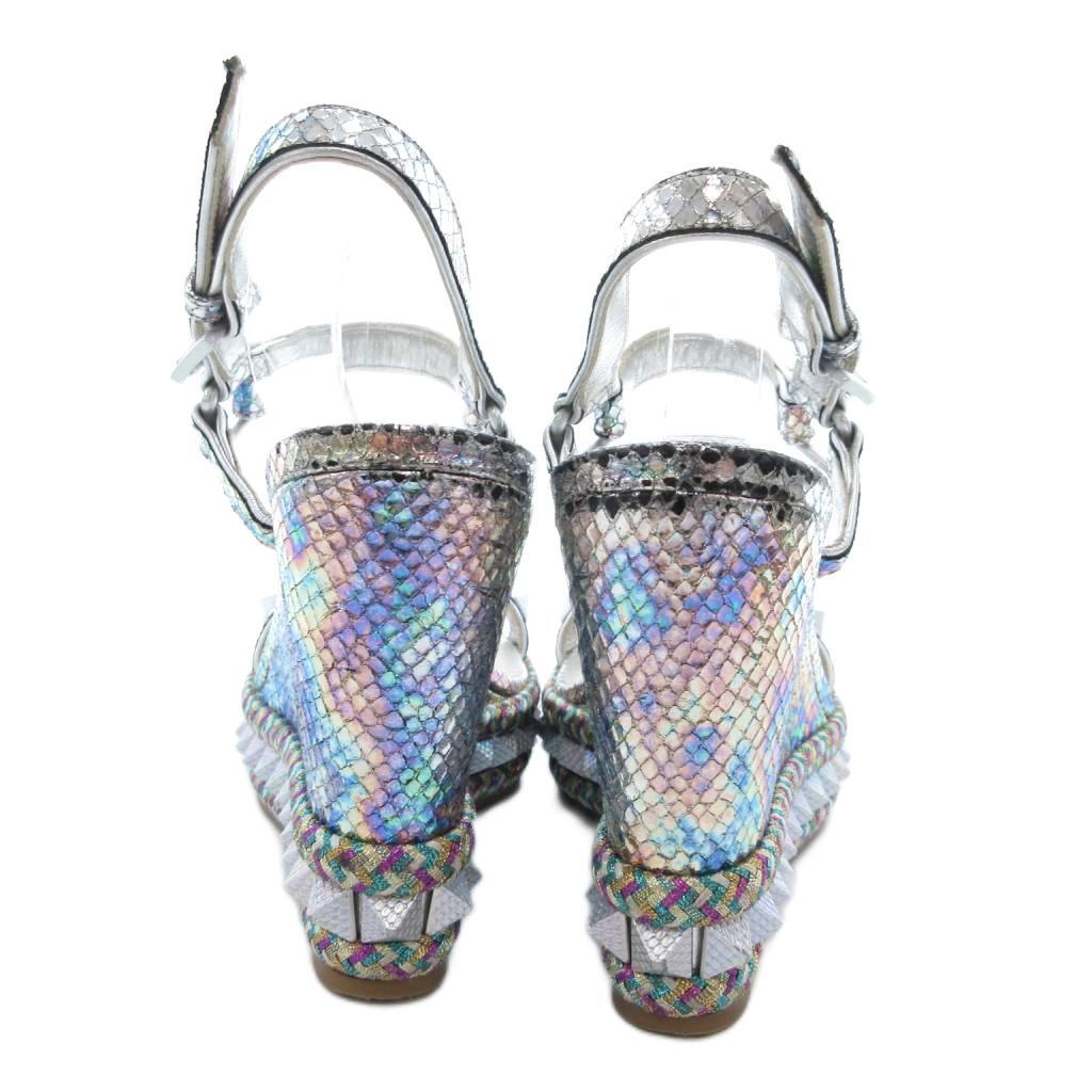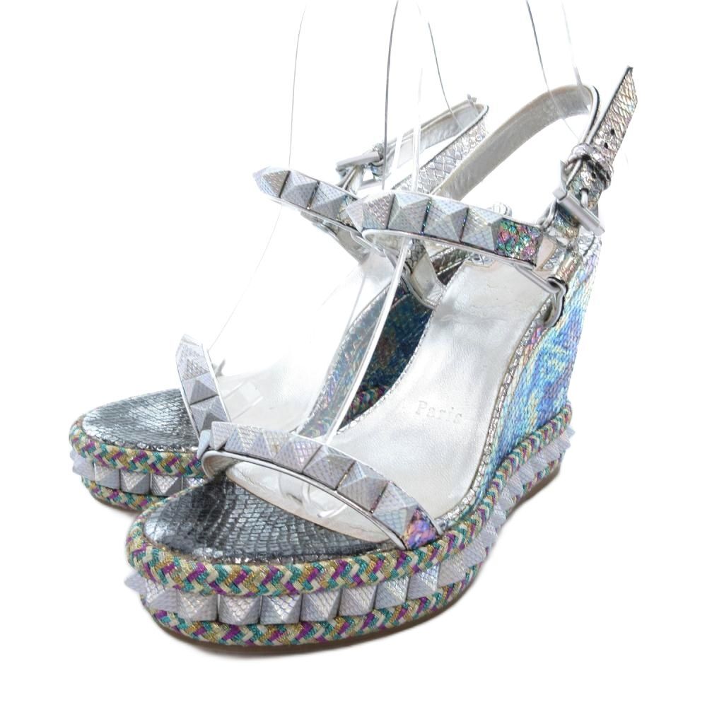 クリスチャンルブタン Christian louboutin サンダル ウェッジソール スタッズ パイソンレザー 蛇革 36 シルバーカラー /JS