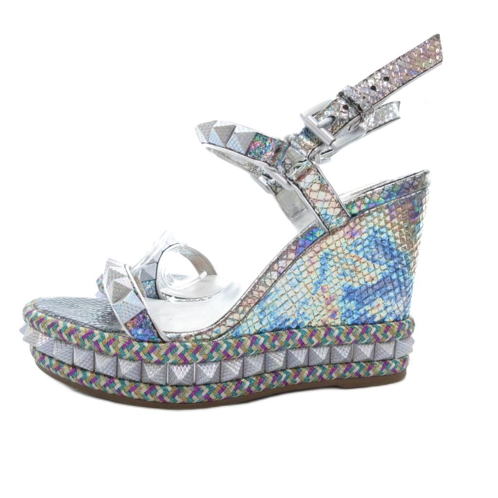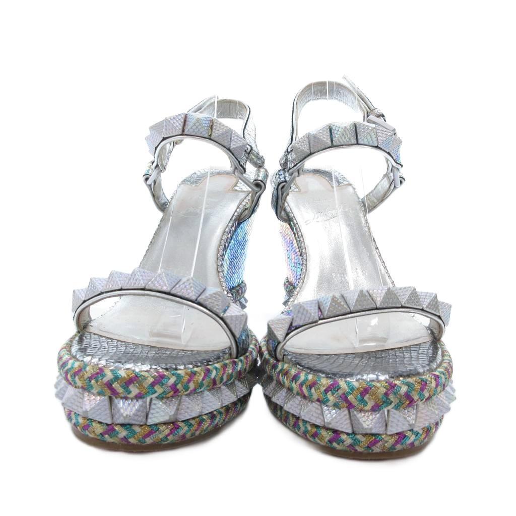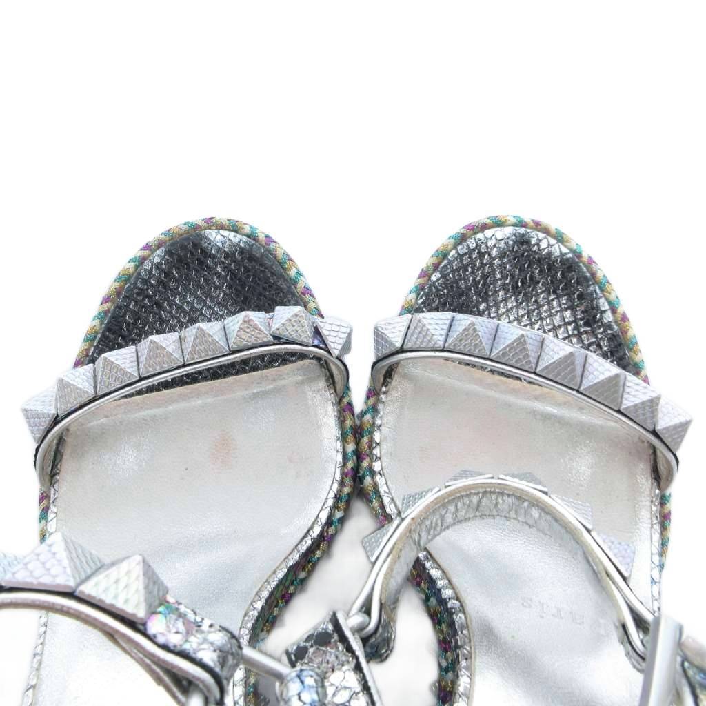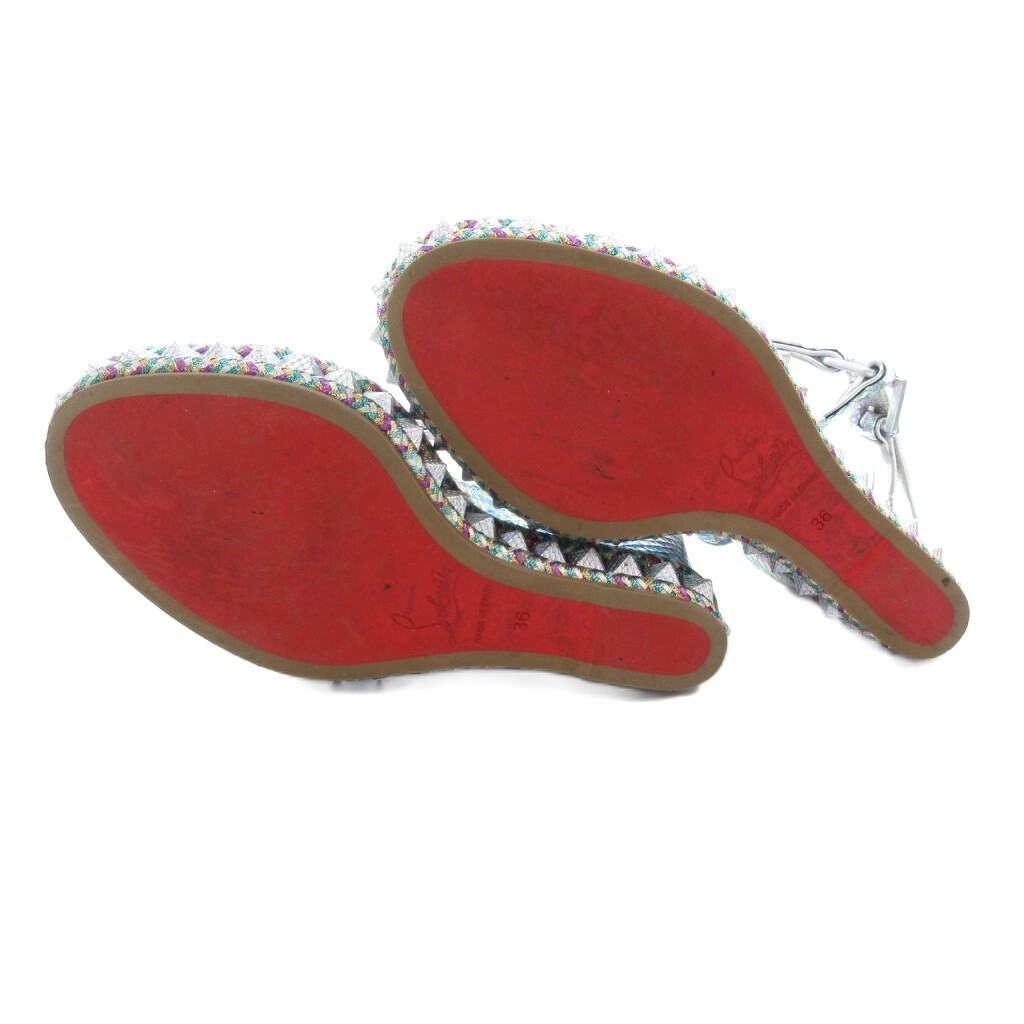 クリスチャンルブタン Christian louboutin サンダル ウェッジソール スタッズ パイソンレザー 蛇革 36 シルバーカラー /JS