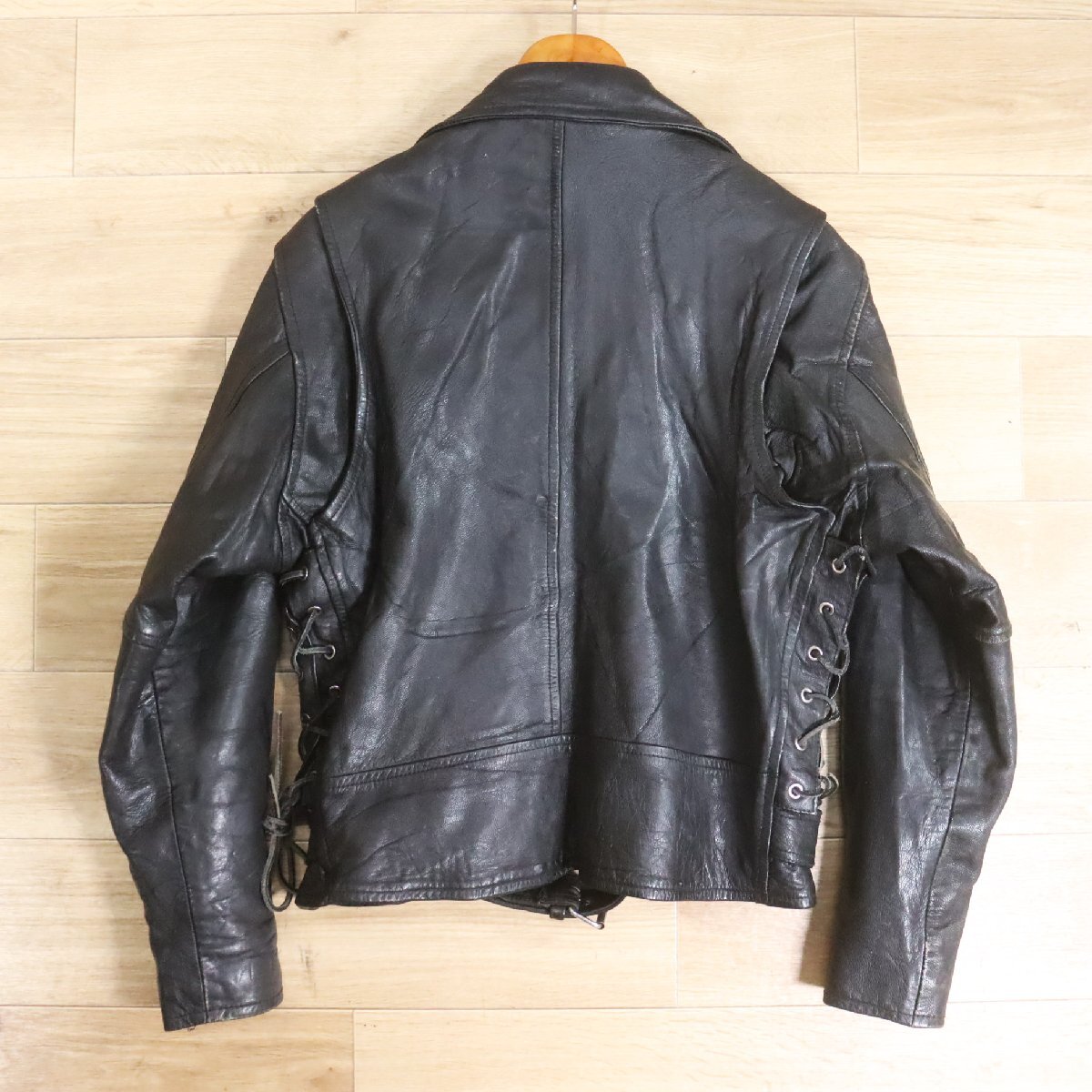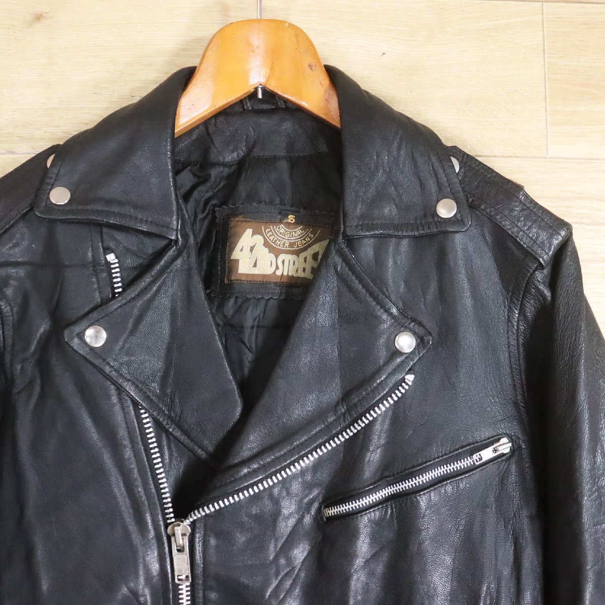 F11S/Y6.23-2 42ND STREET ダブルライダース 本革 レザージャケット サイドレースアップ 革ジャン 皮ジャン S ブラック 古着