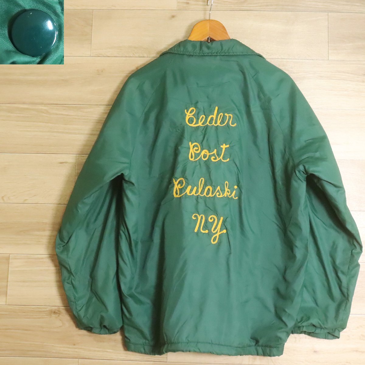 W2K/R7.15-9 アメリカ古着 コーチジャケット チェーン刺繍 裏地フリース ブルゾン ナイロンジャケット ジャンパー メンズ L