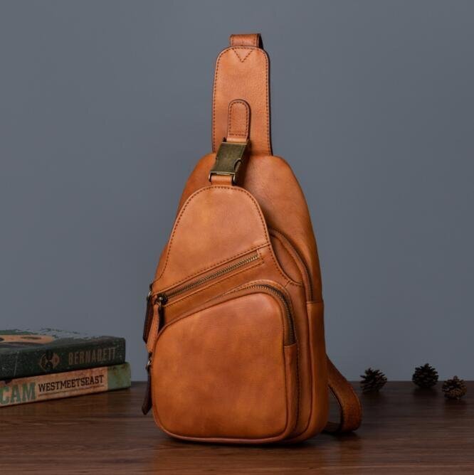 新入荷★ヌメ革 ボディバッグ ワンショルダー 本革 肩掛け 斜めがけ チェストバッグ メンズバッグ 牛革鞄 アウトドア ★3色選択可