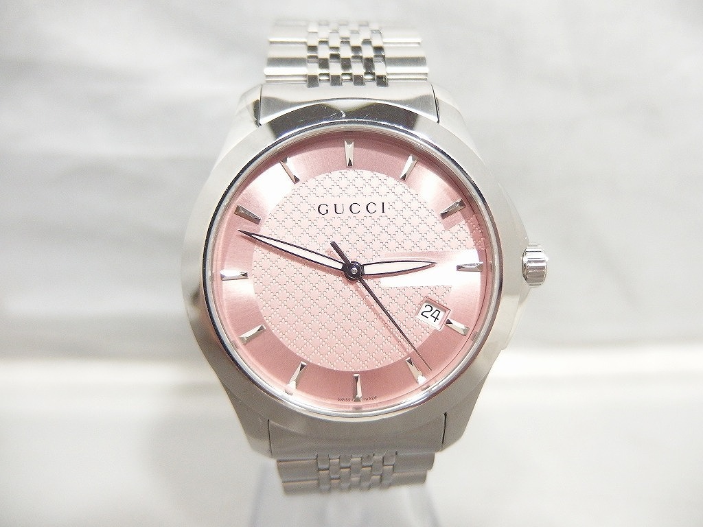 期間限定セール グッチ GUCCI Gタイムレス クオーツ腕時計 ピンク(文字盤)・銀 YA126429