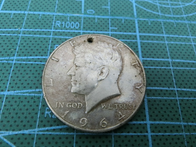 ケネディハーフダラー銀貨 50セント 1964年 当時物 穴あけ加工有りジャンク品 2