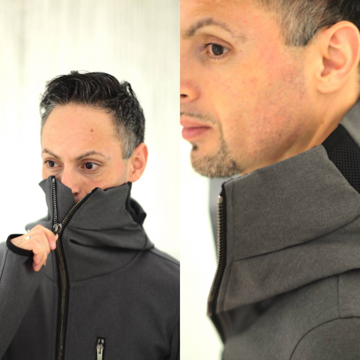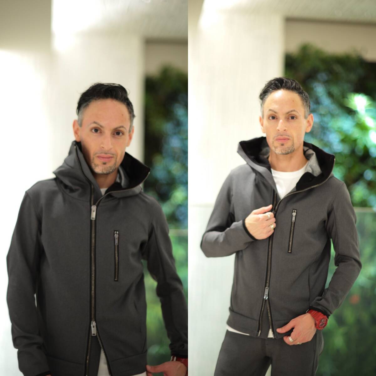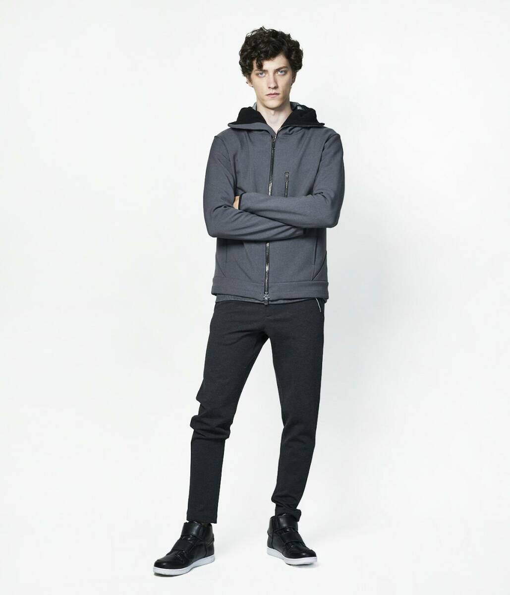 カジュアルでリラックスした印象が強いパーカーを、光沢感のある生地とラッカーに社のファスナーを採用することにより、大人のスポーツモードウェアへと変貌を遂げました。