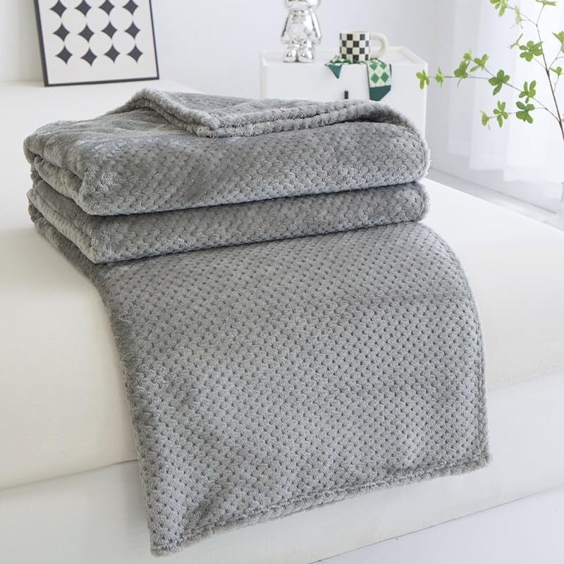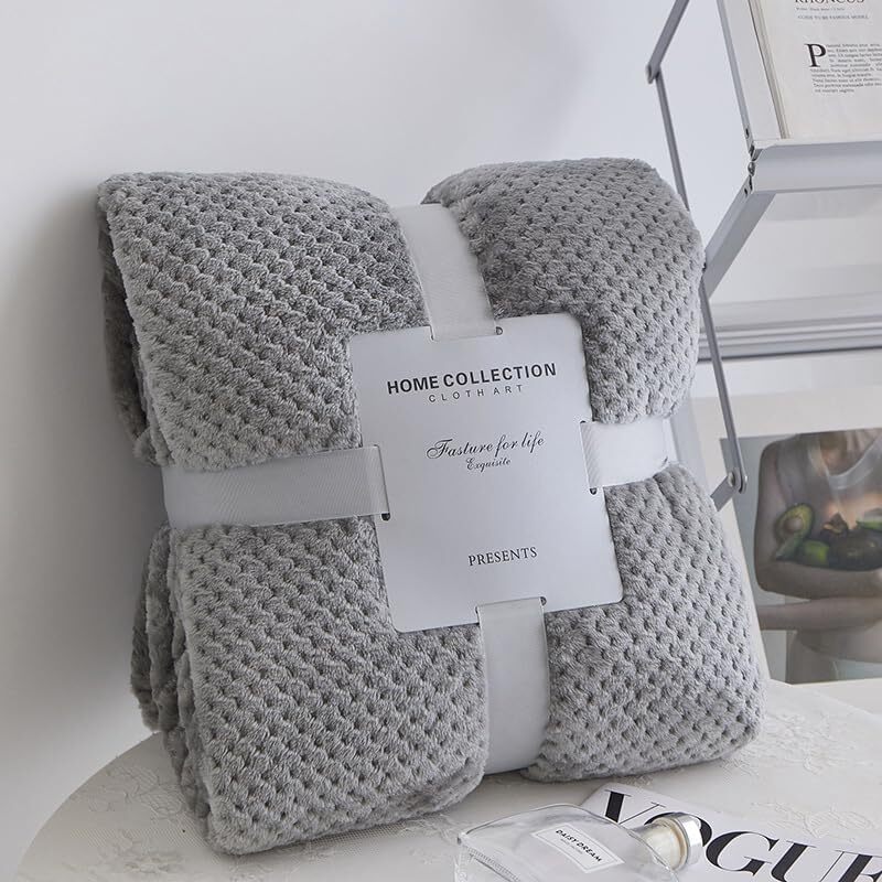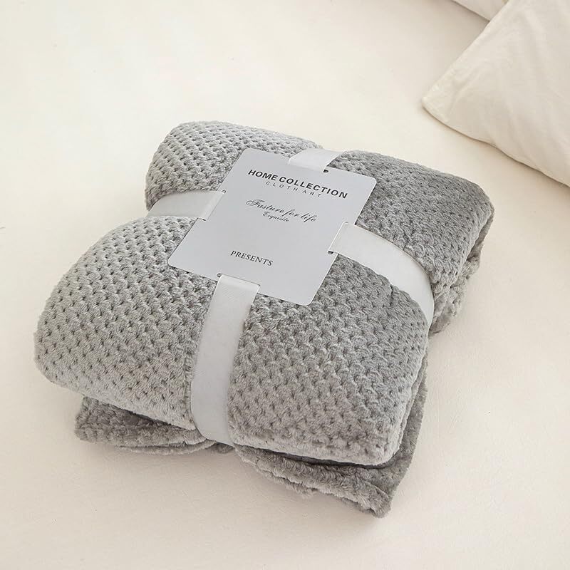 【200cm×230cm, ライトグレー】マルチカバー ブランケット ソファーカバー ベッドカバー 暖かい ワッフル ふわふわ もこもこ毛布