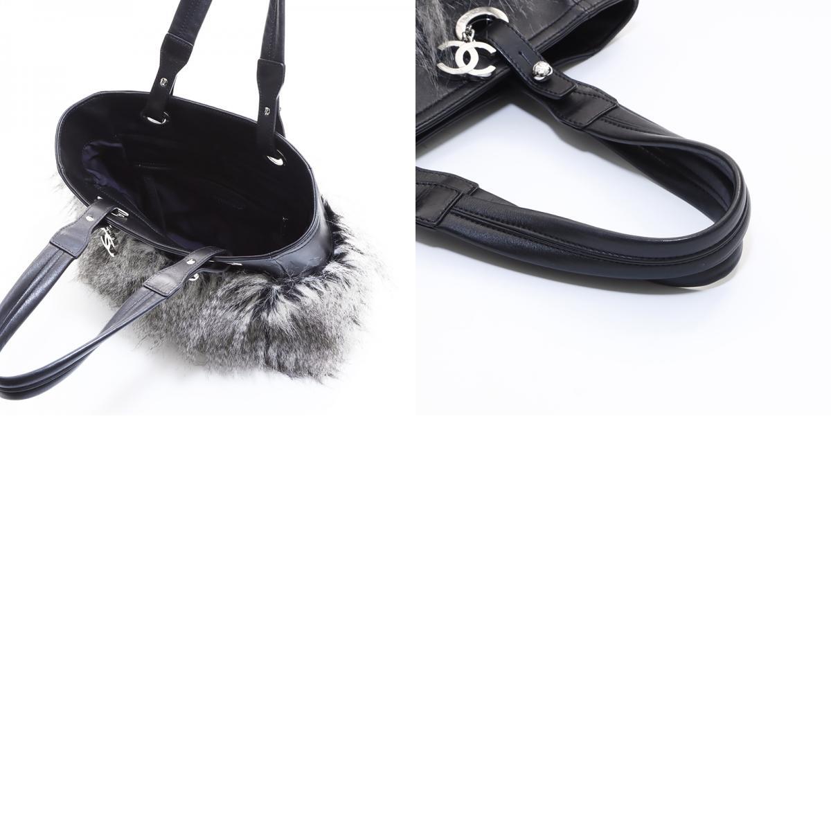 極美品 シャネル CHANEL バリビアリッツ ファー ハンドバッグ ブラック WS7198