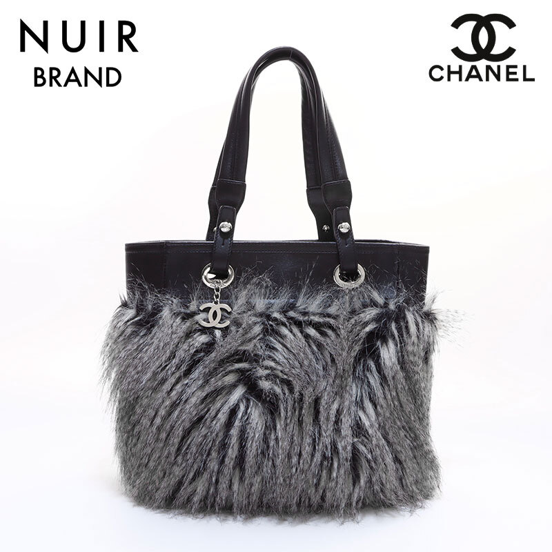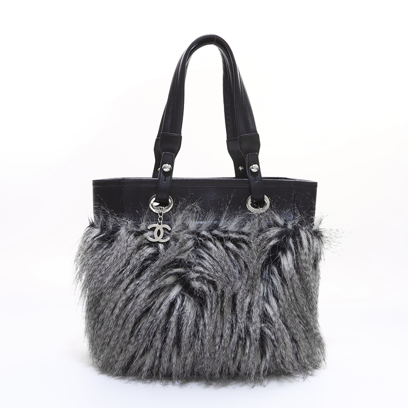 極美品 CHANEL バリビアリッツ ファー ハンドバッグ ブラック
