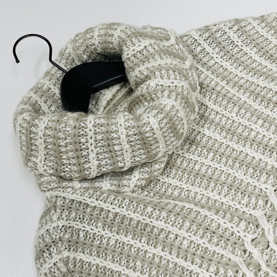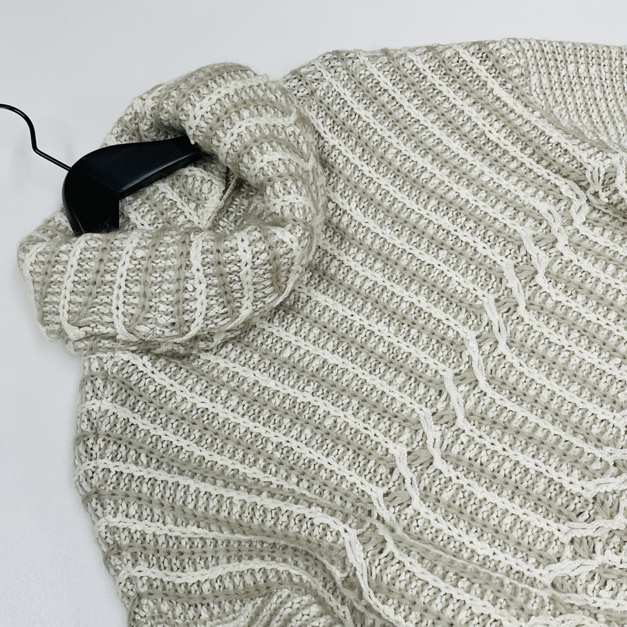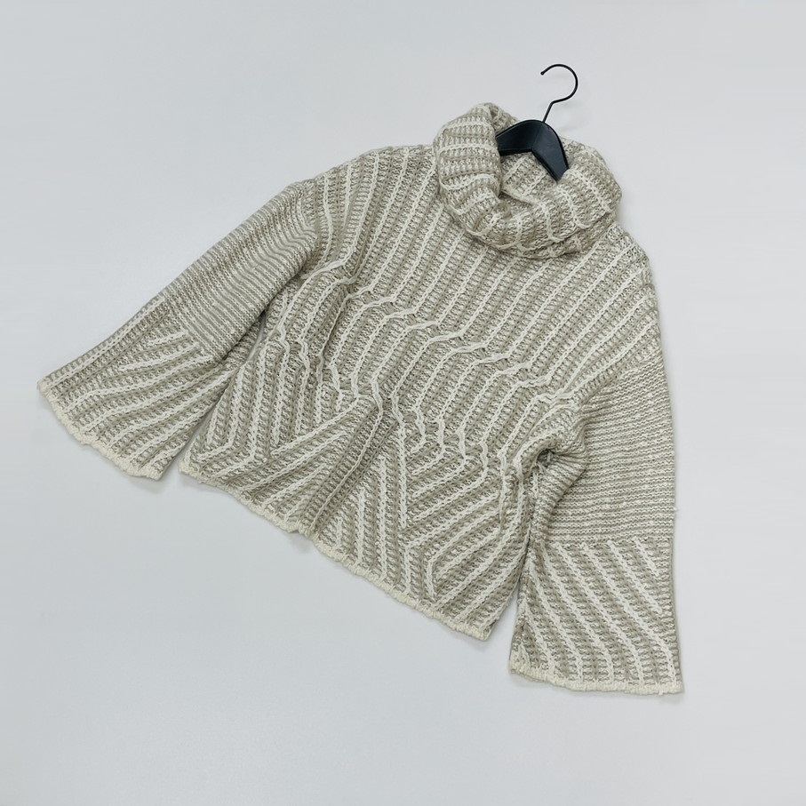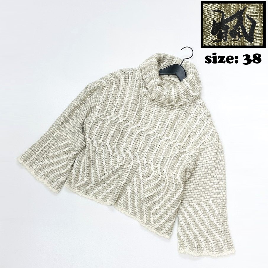 芽風 /38/ グレー×ホワイト 長袖ニットセーター タートルネックアウター 日本製 生地コットンナイロンウールアクリル マツオ センソユニコ