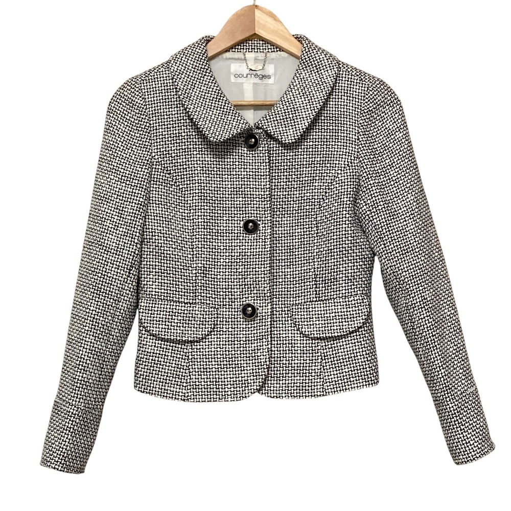 商品名:courreges クレージュ ジャケット ひざ丈 ワンピース スーツ アンサンブル サイズ9/11 ホワイト ブラック
