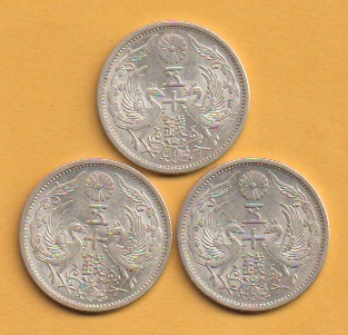 ○ 小型50銭銀貨《昭和11年》 3枚  極美品