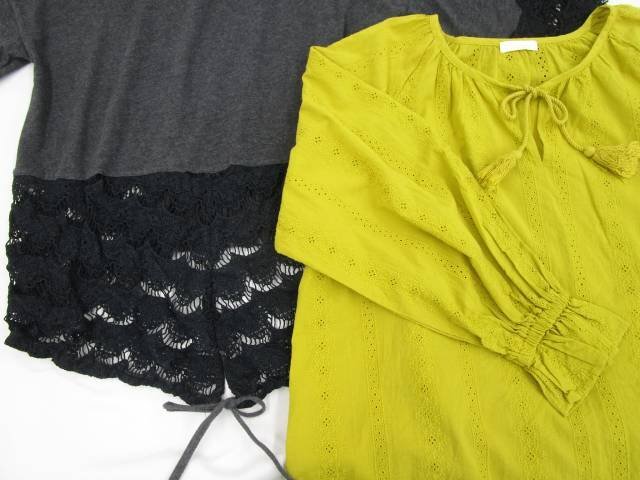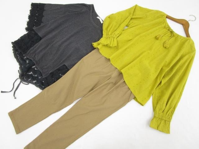 洗える長袖プルオーバーブラウス+半袖カットソー+テーパードパンツ コーディネート上下3点セット L相当 マスタード 花柄刺しゅう/グレー 花柄刺しゅう/キャメル きれいめ・カジュアル系 30代