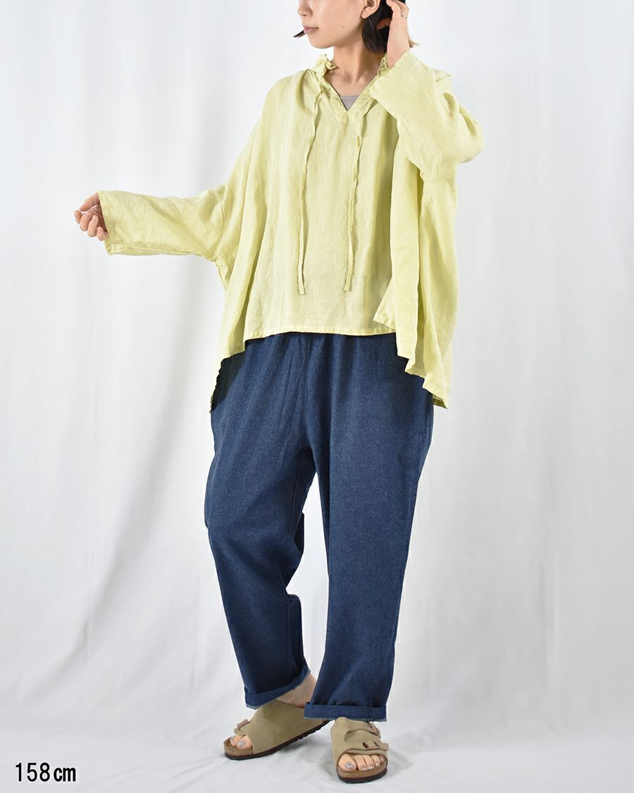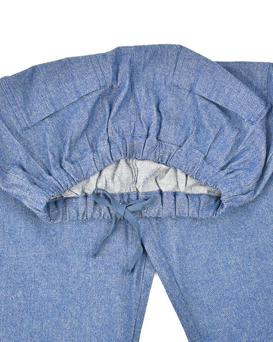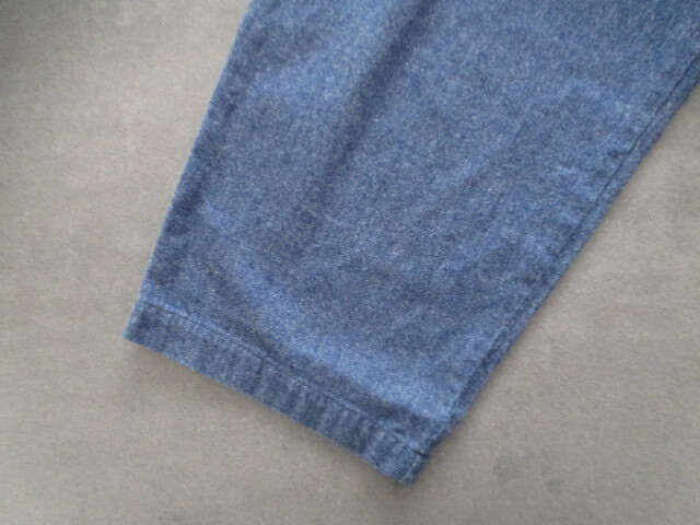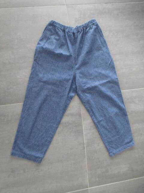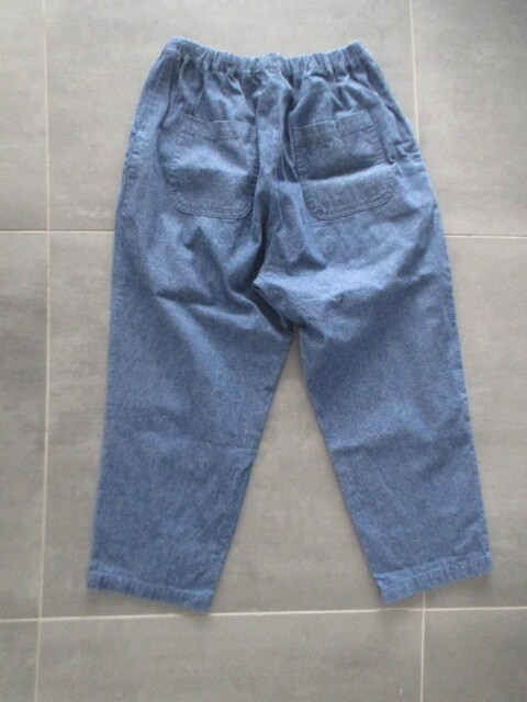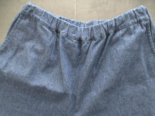 | 動きやすくゆったりとしたシルエットのイージーパンツ。 適度なハリと軽さが特徴の8オンスのデニム生地を使用。 さらりとした素材感で夏でも暑苦しくなく穿いていただけます。 ウエストがゴム+ヒモ仕様で、リラックス感のある穿き心地。 ゆとりのある腰回りから、裾に向かって細くなる、ほどよいテーパードシルエット。 後ろに付いた大きめのパッチポケットが、後ろ姿のアクセントになっています。 【サイズ】 フリー 【実寸】 ウエスト 31cm ヒップ 55cm 股上 35cm 股下 58cm ワタリ 32.5cm 裾幅 20cm(ネットショップ参照。誤差はご了承下さい) 【素材】 綿 100% 【参考価格】 ¥15,400 1~3枚目は参考写真です。 特に気になる汚れなどないと思いますがあくまでもユーズド品です。見落としがある可能性もありますので、少しでも気になる方は申し訳ございませんがご遠慮下さい。 | ||||