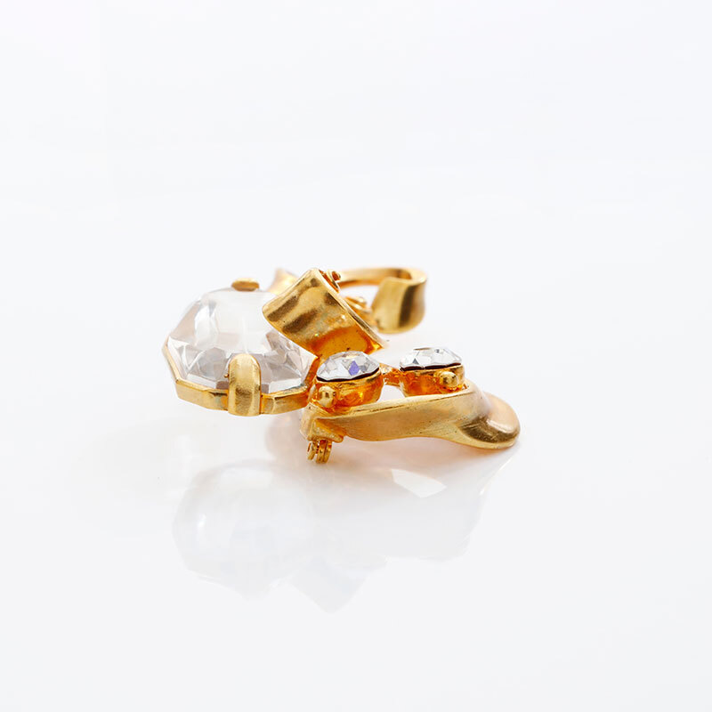 美品 Christian Dior ラインストーン ブローチ ゴールド