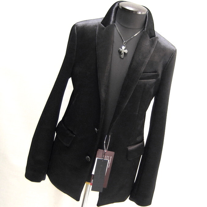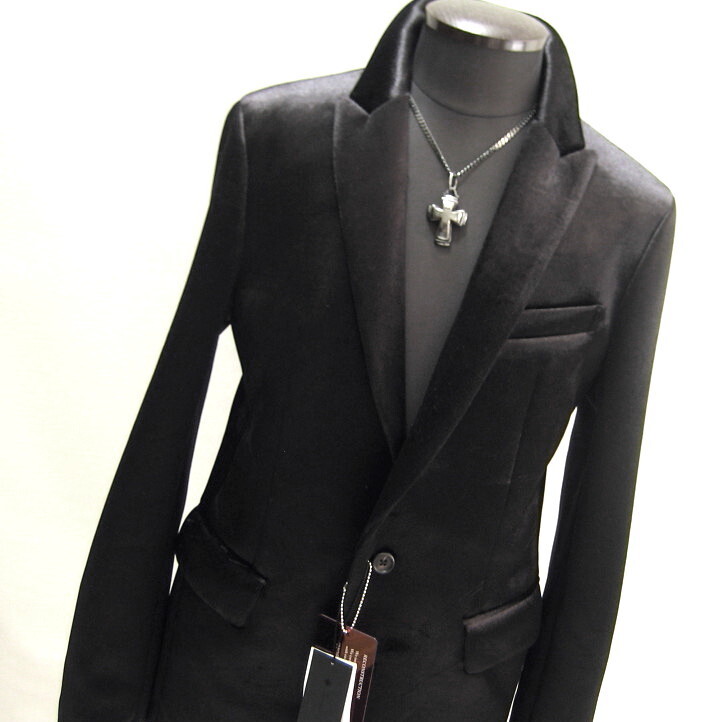 新品 4.3万 トルネードマート LL ベロア ピークドラペル2ツ釦ジャケット 伊 イタリア生地 ブラック 239