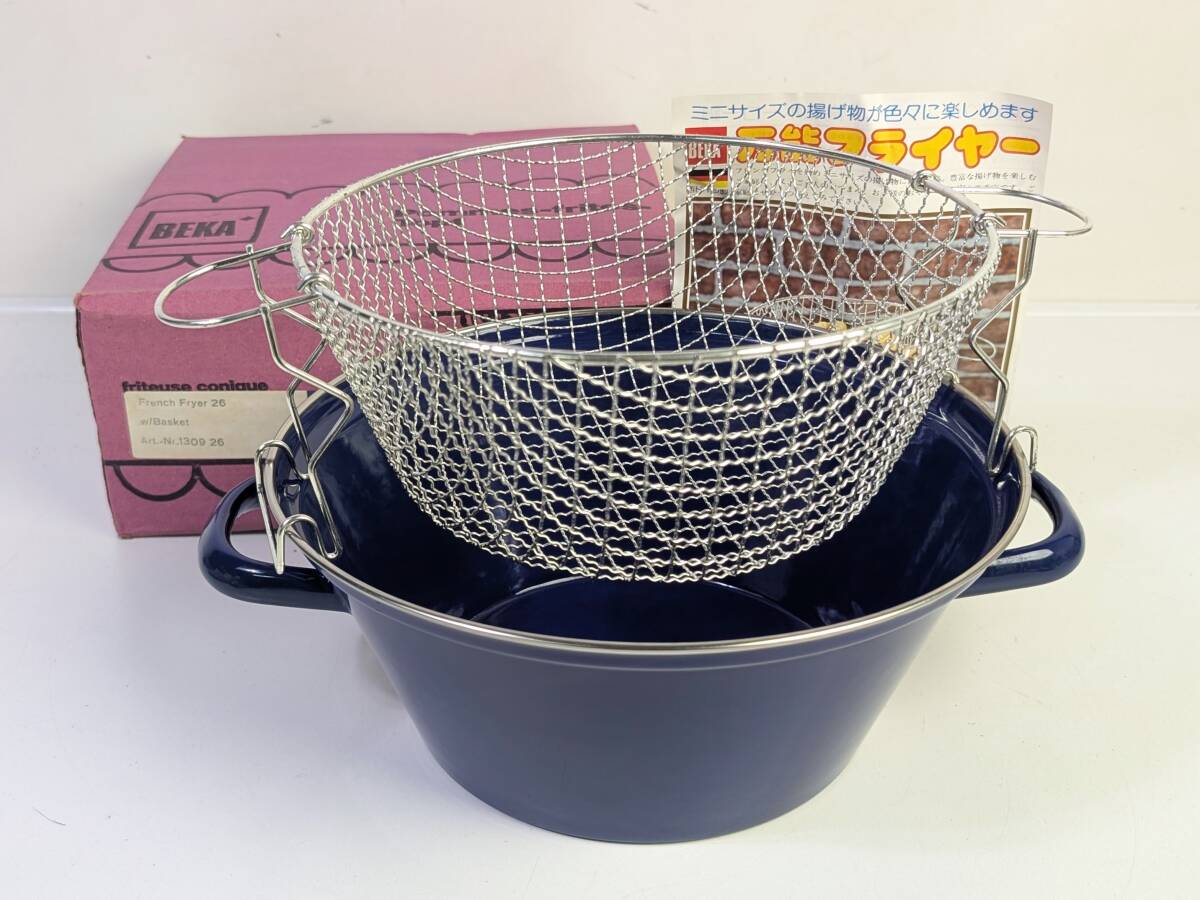 未使用保管品 BEKA 西ドイツ製 万能フライヤー バスケット付き ホーロー鍋 レトロ ヴィンテージ