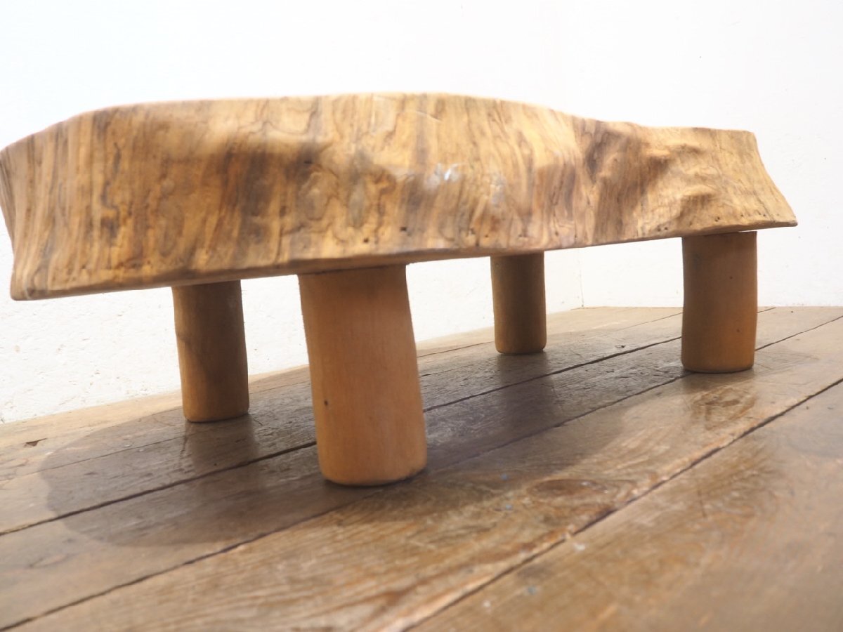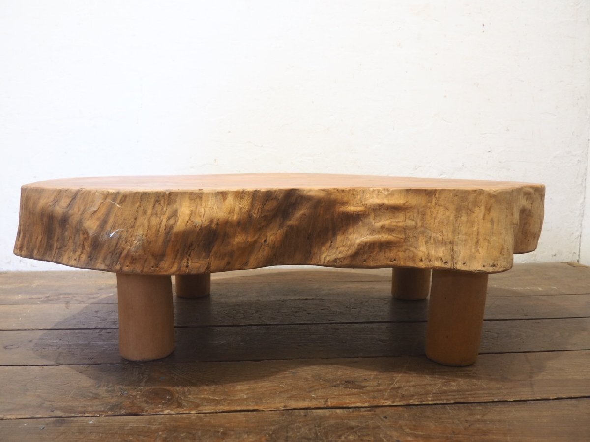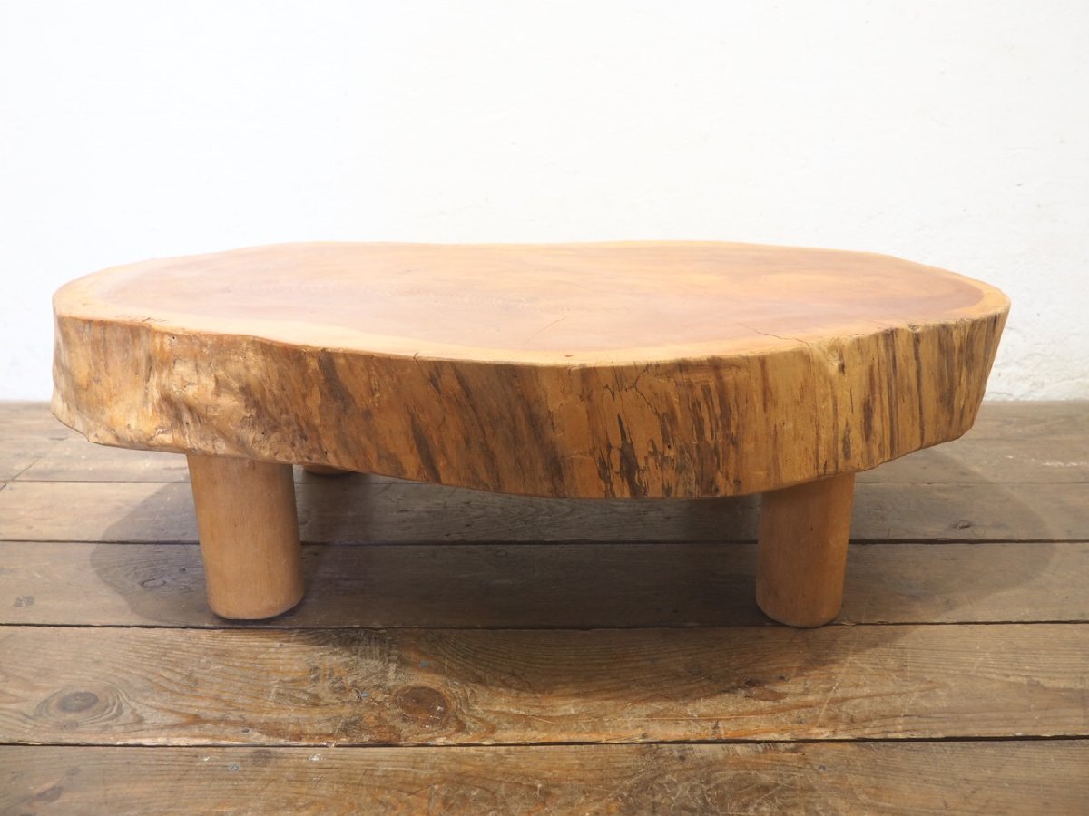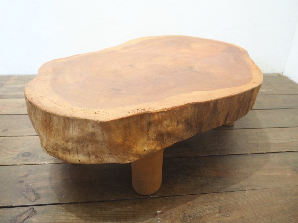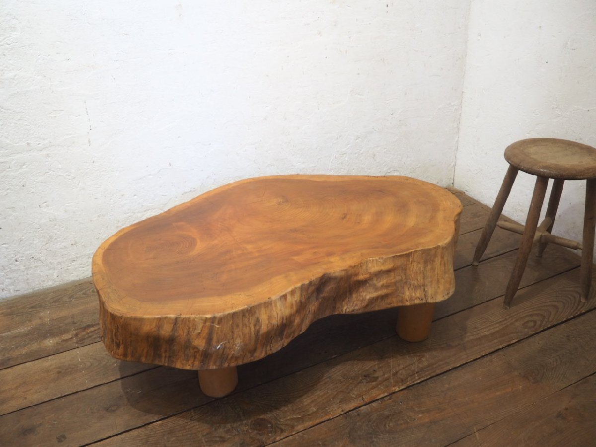 タ荷U0703◆③最大W100cm×D60cm◆分厚い切り株の古い木製ローテーブル◆欅 けやき 机 座卓 展示台 和モダン レトロL(ヤC)松