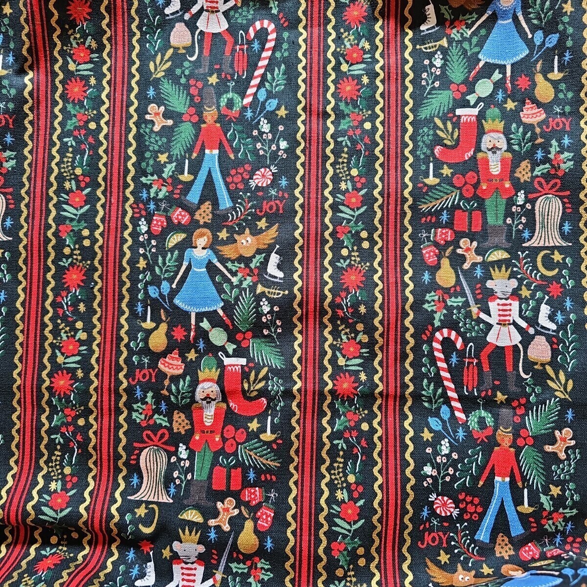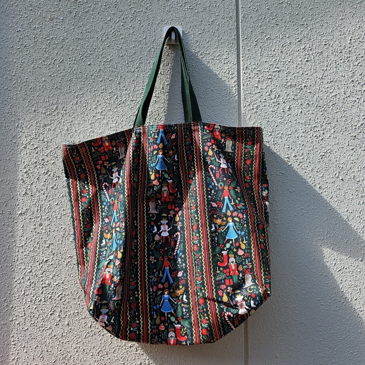 即決 送料無料 ハンドメイド USAコットン RIFLE PAPER ライフルペーパー HOLIDAY CLASSICS 黒 エコバッグ 布カバン トート 大容量⑩