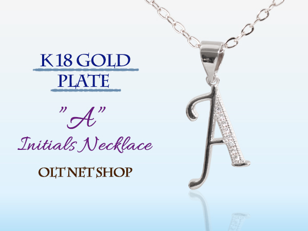 A イニシャル ネックレス レディース シルバー 18金 18kコーティング ホワイトゴールド 英語/ K18GP CZダイヤ 【 A 】イニシャルネックレス