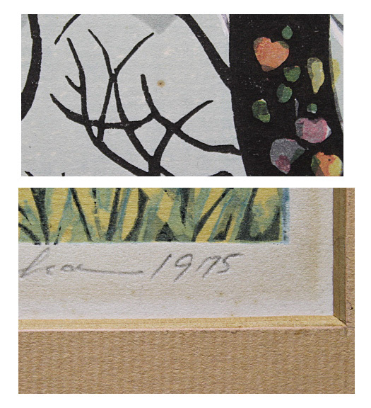作品コンディション 黒い木の左側に僅かな点シミ有り(画像参照)