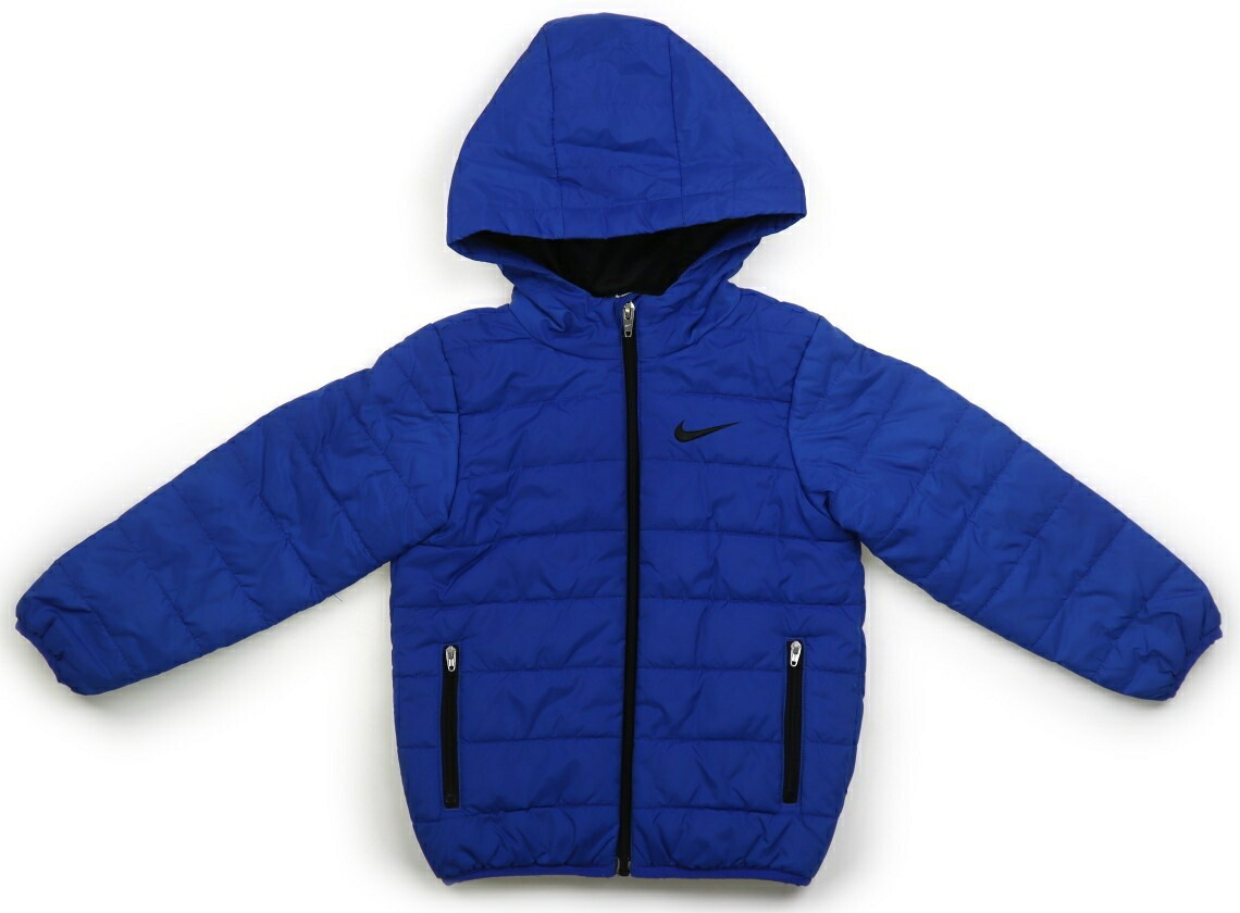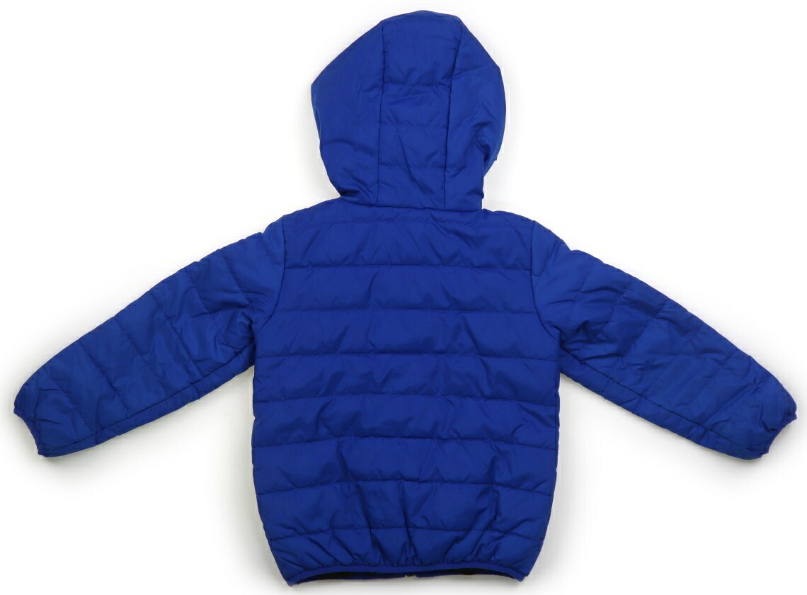 ポリエステル素材。中綿入り。フードは縫い付けです。実際のサイズ表記は、4T。右胸に細かい汚れが複数見られ、パイピングに毛玉感があります。