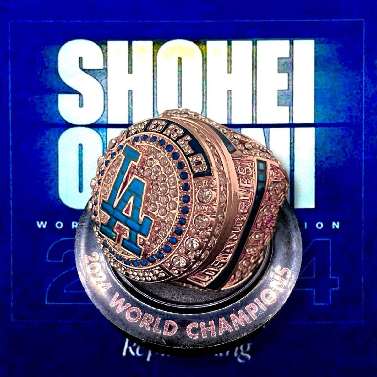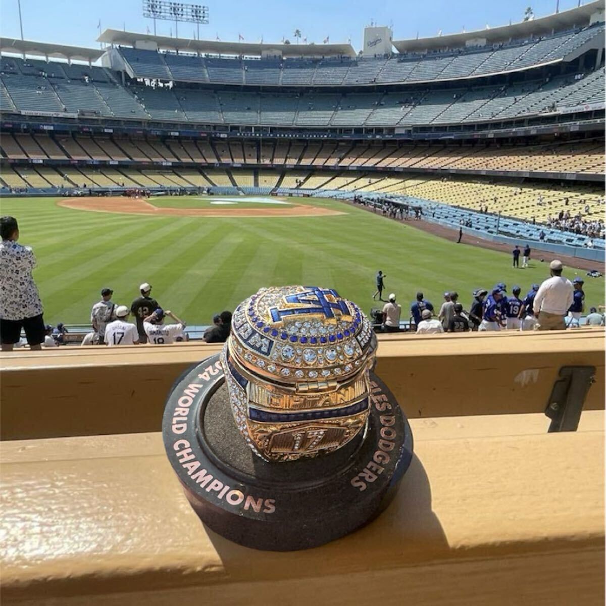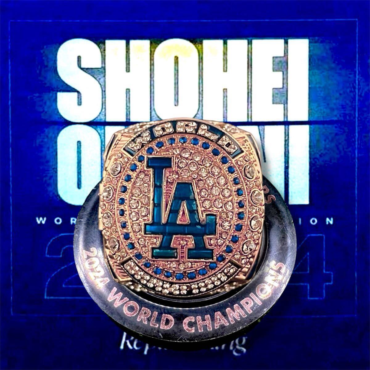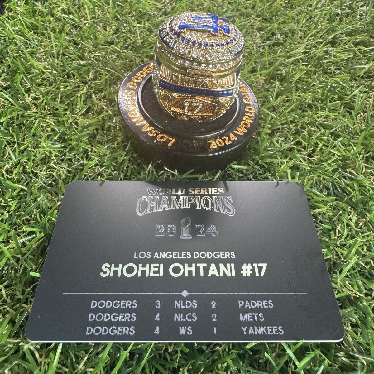ドジャースのワールドチャンピオンリングのセミオーセンティックのレプリカリングと、サインプリントワールドチャンピオンカードのセットとなります。