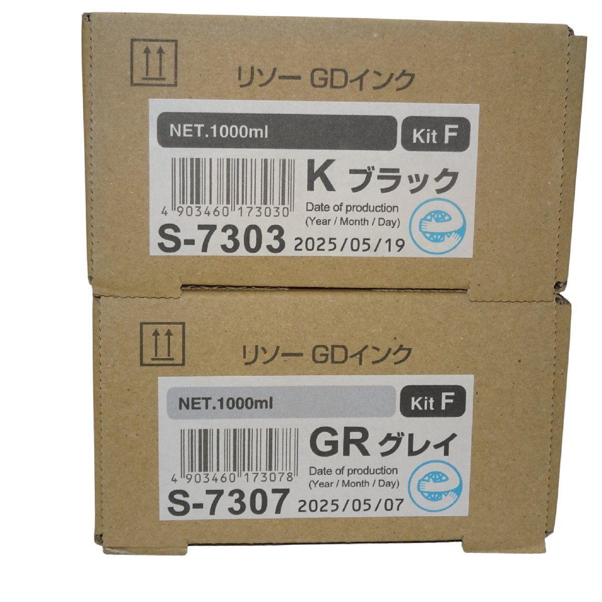 ★2色セット 純正 RISO 理想科学 リソーGDインク S-7303 ブラック / S-7307 グレイ kitF 1000ml オルフィスORPHIS GD 9630/9631/7330 8442