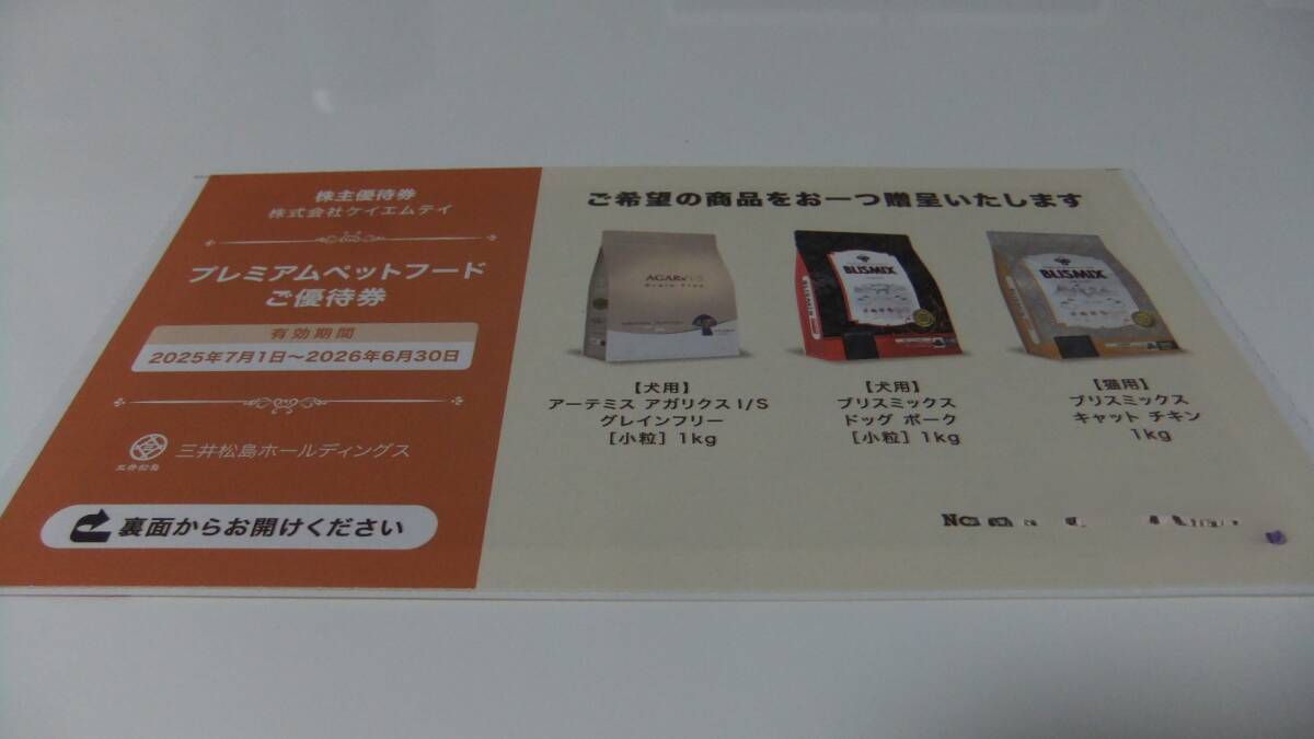 三井松島ホールディングスの株主優待券 プレミアムペットフード  送料込