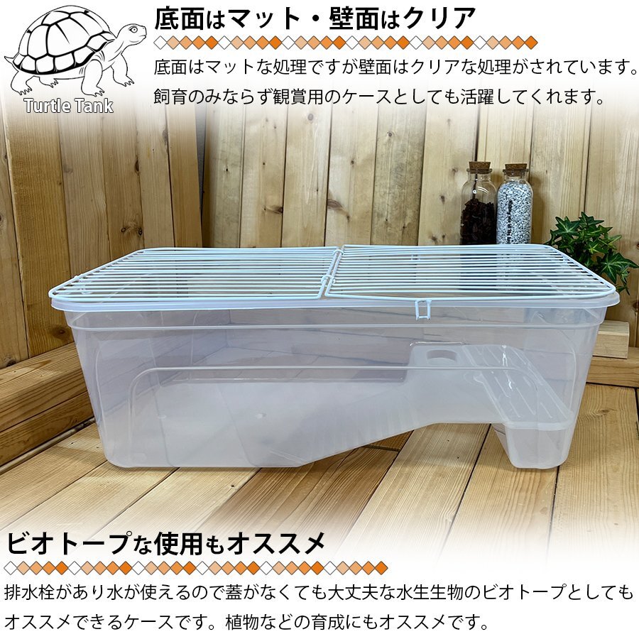 ・アップグレード版 亀飼育ケース(中) クリアケースです。 ・スロープ形状や底面の処理などを仕様変更したアップグレード版になります。 ・壁面は観賞用のケースとしても利用できるようクリア処理。 ・底面は少しサンドブラストのような処理でマットな質感で高級感も◎ ・当店オリジナルの蓋付きでコストパフォーマンス優秀なケースに。 ・排水栓が標準装備。お手入れも楽な利便性に優れたクリアケースです。 ・クリアホワイト・クリアブラックの2色展開。 ・旧バージョンからの飼育についての難点を軽減・解消した仕様変更となります。 |