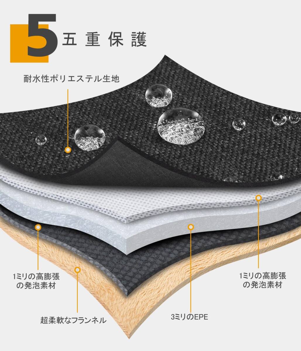 キズ防止の極細なボア裏地と 5重衝撃吸収構造で大事なパソコンやタブレットを守ってくれます。