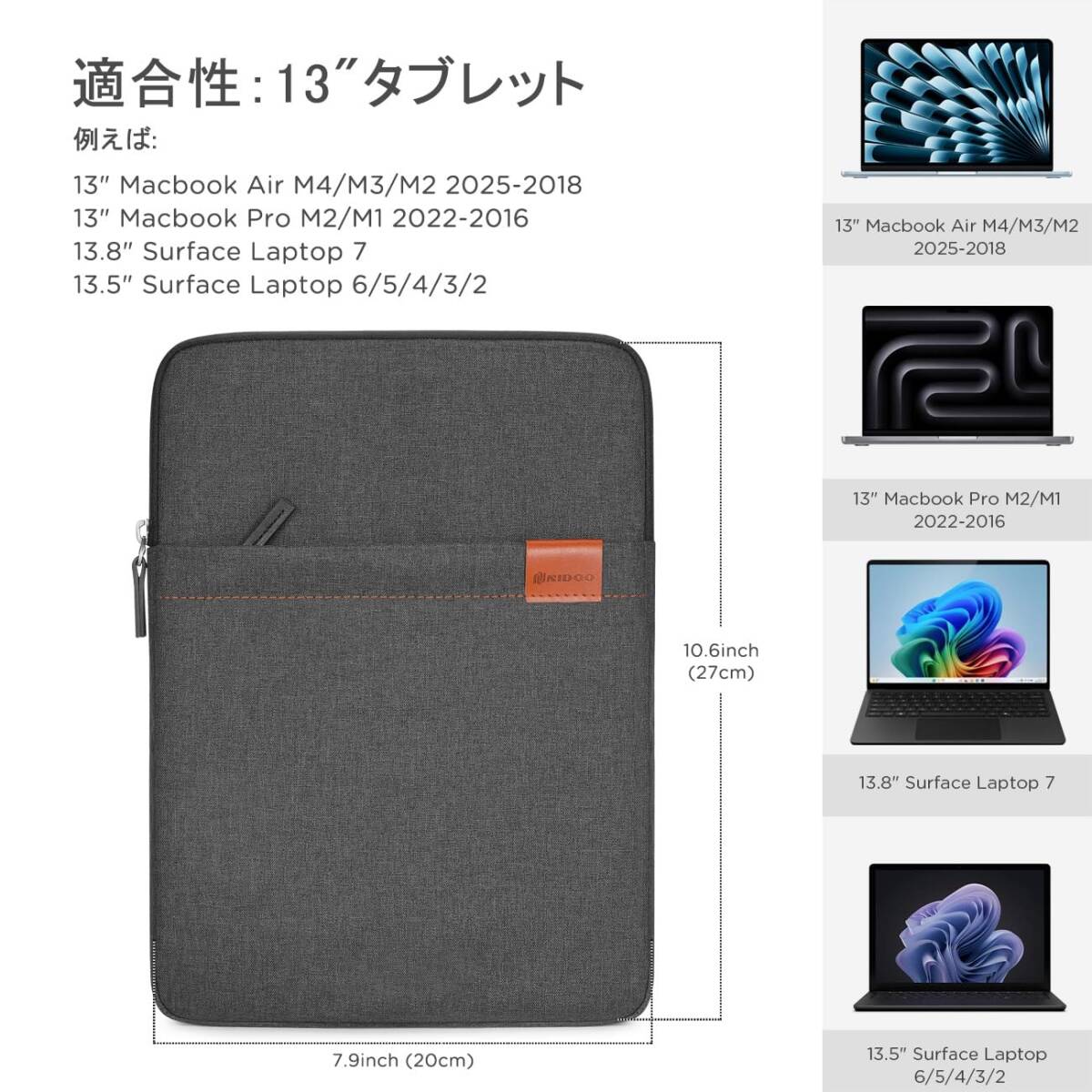 NIDOO タブレットケース 13インチラップトップケース (Macbook Air 13 M4/M3/M2/M1, MacBook Pro 13, 13.8" Surface Laptop 7, 13" Latitude 5350/7350, 13.4" XPS 13, 13" ThinkPad X13 L13 Gen 5) Tablet HP Laptop Sleeve 13",ダークグレー