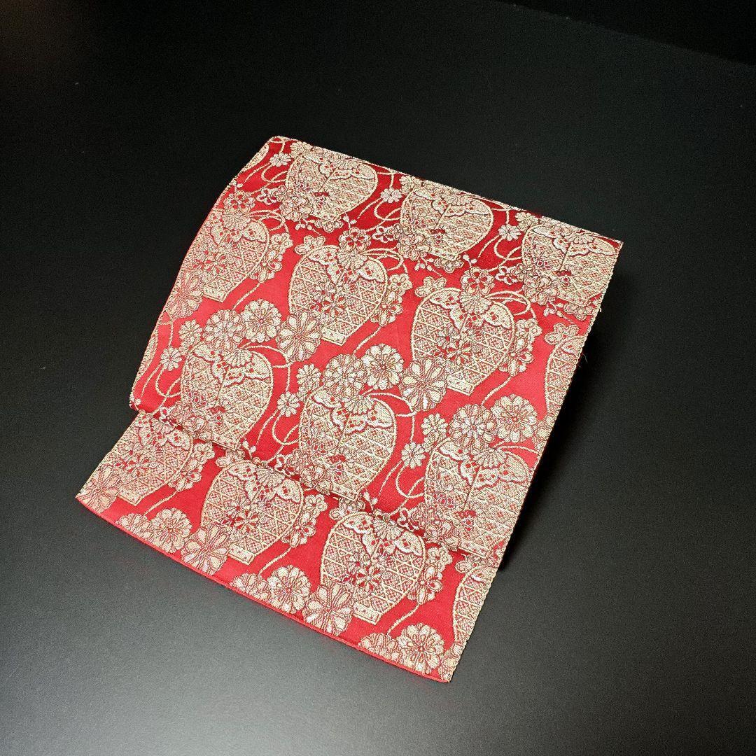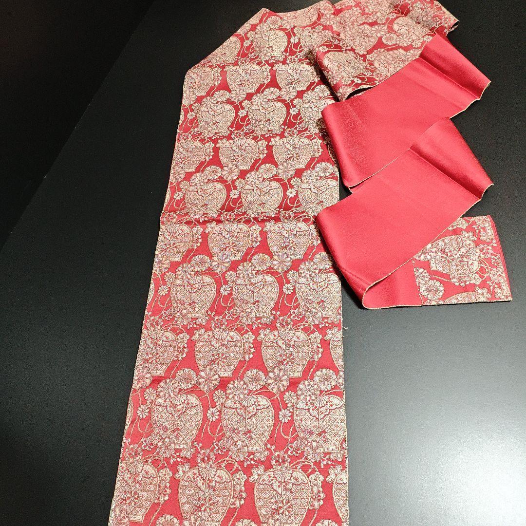 名古屋帯 名古屋仕立て 正絹 八寸 壺 華模様 エスニックの名古屋帯になります^ ^